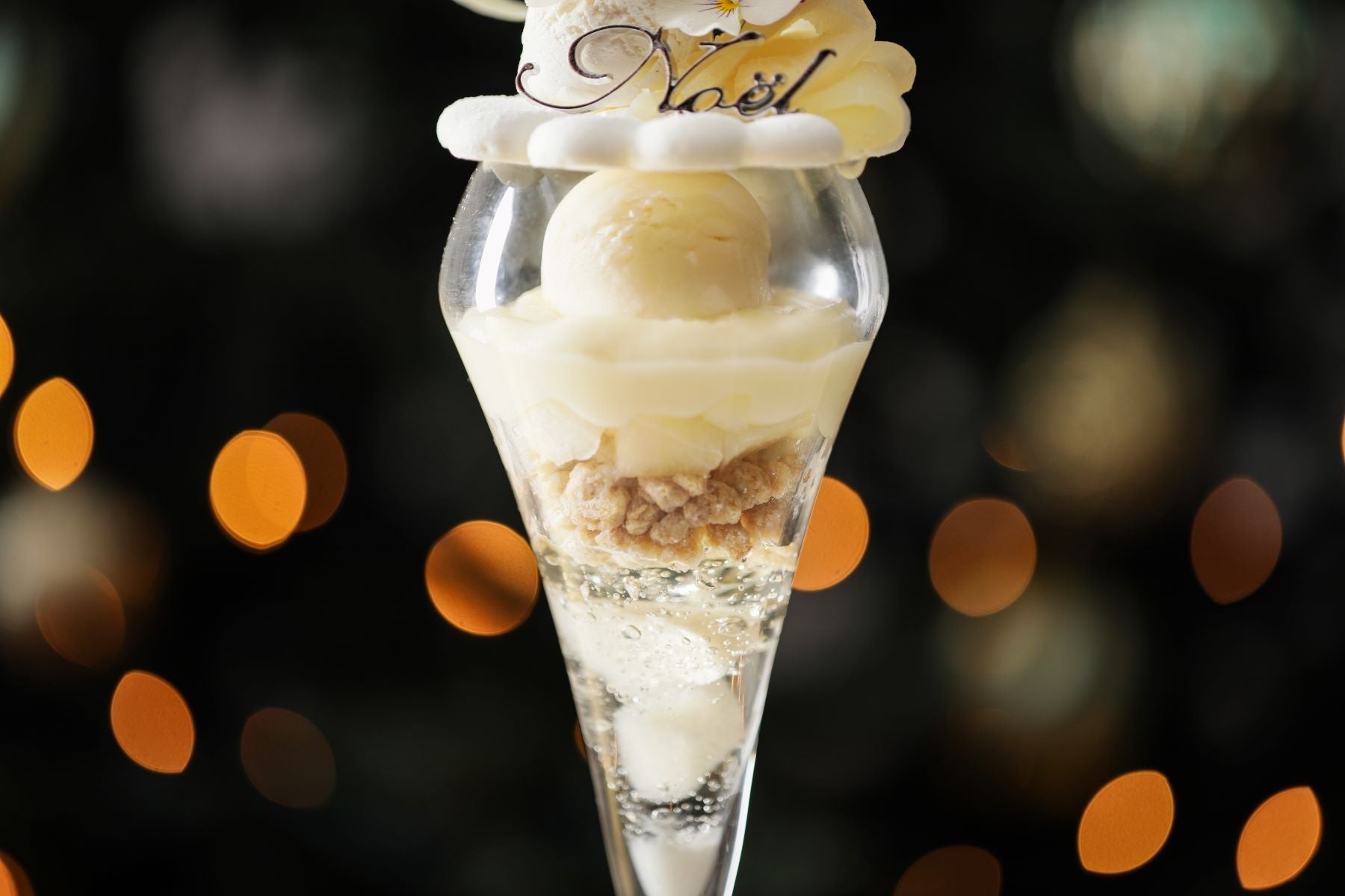2023年11月14日(火)~2023年12月21日(木)まで、フレンチレストラン「グラマシースイート」にて、ティラミスをモチーフに、北海道産マスカルポーネチーズと深煎りコーヒーの自家製アイスが絶妙にマッチした『大人のご褒美パフェ ~White Christmas~』を販売いたします。