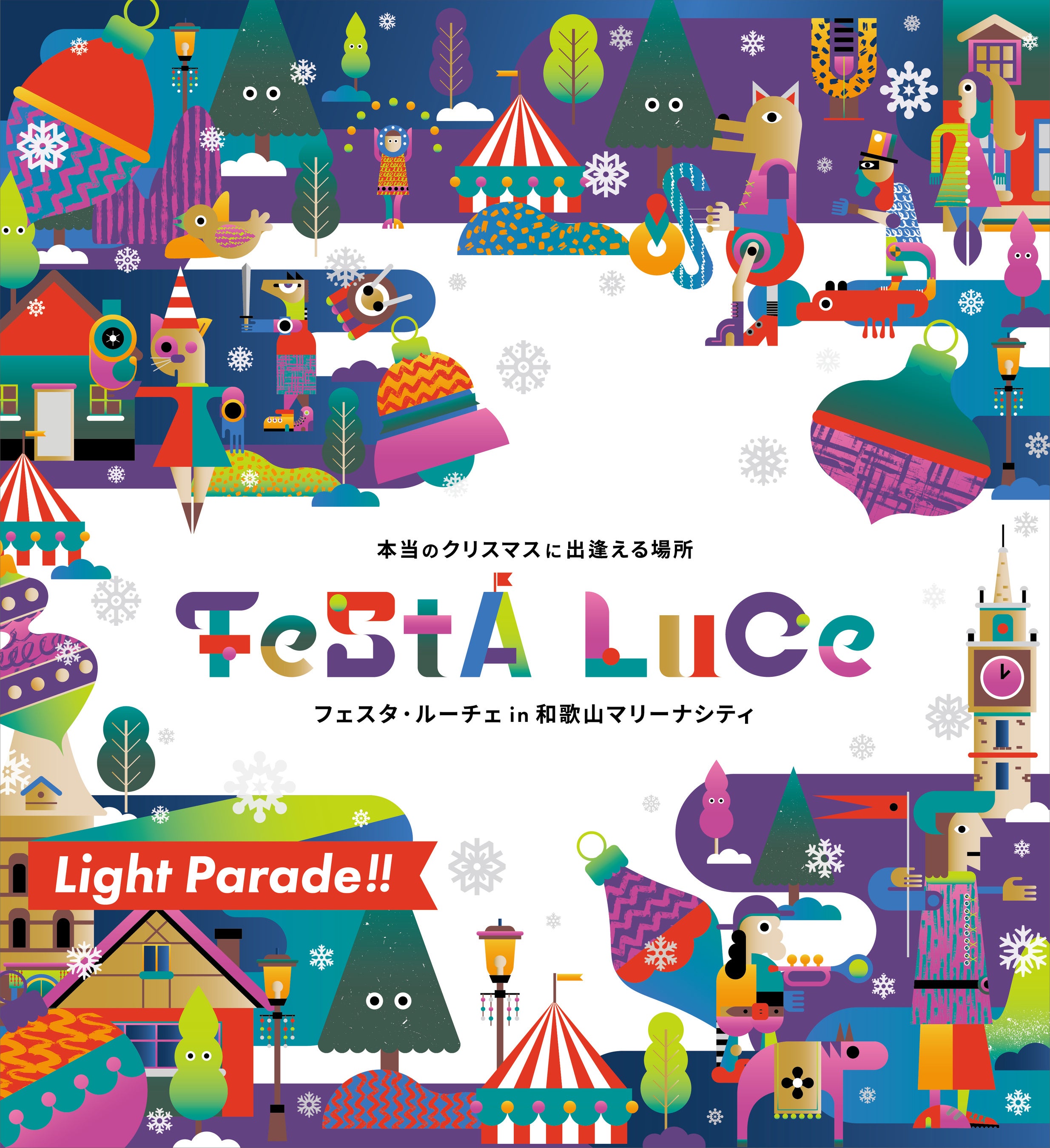 人は光のある所に集まり、そこで出会いが生まれ、街に活気が生まれます。「LIGHT PARADE」は光や人がまるでパレードをするように街に彩りが生まれる事を願って名付けました。和歌山市内で行われる「KEYAKI LIGHT PARADE」(けやきライトパレード)やマリーナシティで行われるフェスタ・ルーチェも同時期開催で行われ、この冬は和歌山が明るく照らされるワクワクする街になるはずです。