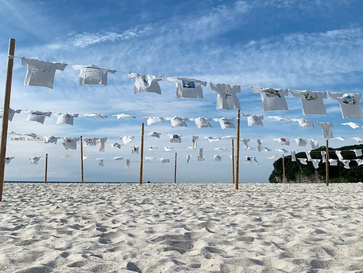 このTシャツアート展では、全国から応募のあった絵画やイラスト、写真、書などの作品をTシャツの胸元に印刷したオリジナルTシャツを製作し、洗濯物を干すように砂浜に展示します。イベント初日には、障害福祉関係団体による作品展示や販売、コンサートの開催、Tシャツ製作時に出るハギレを活用したワークショップを実施予定です。イベント期間中には車いすやベビーカーでも砂浜を走行できるビーチマットを設置し、障がいのある人もない人も誰もがTシャツアートを通して交流できるイベントとなっています。