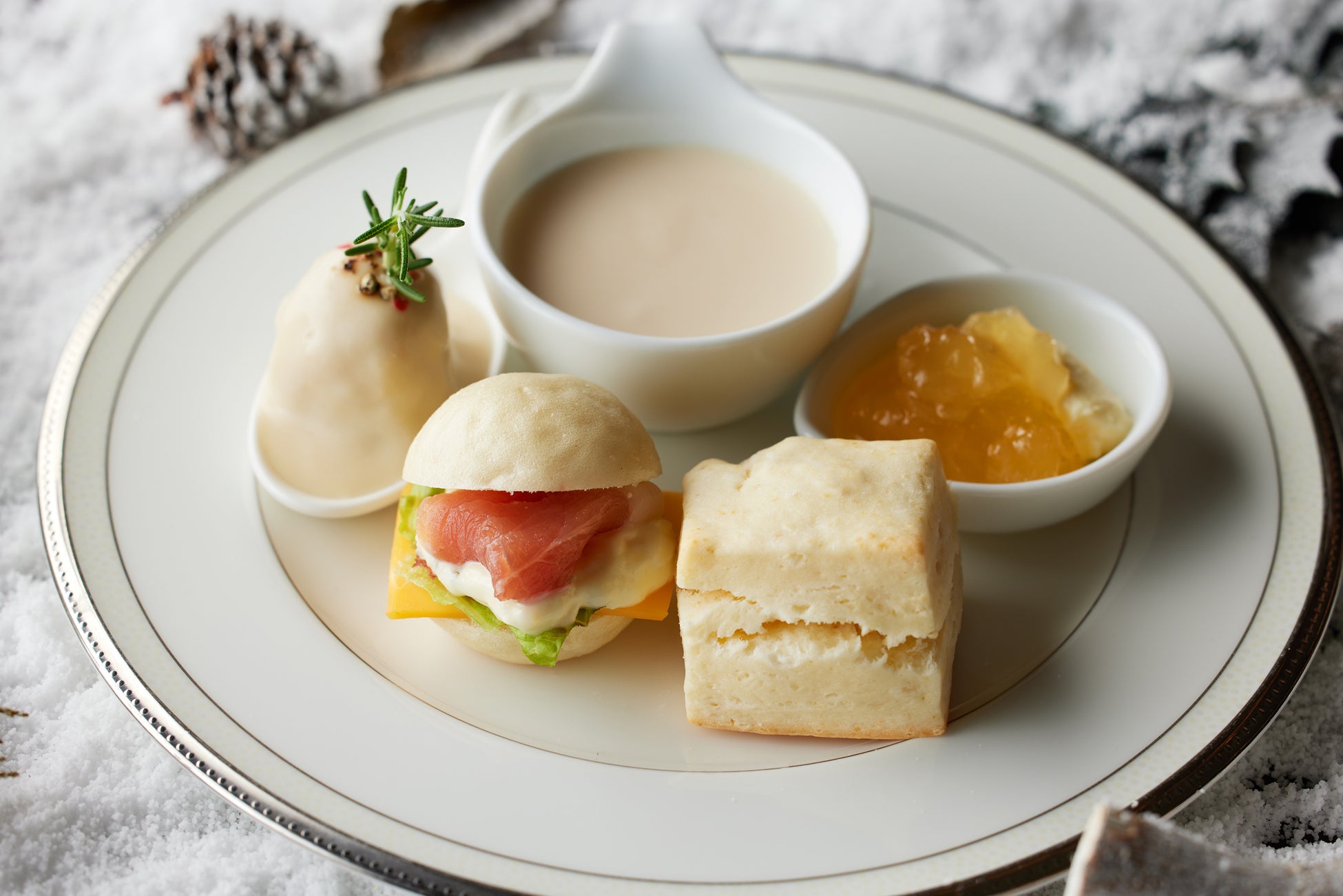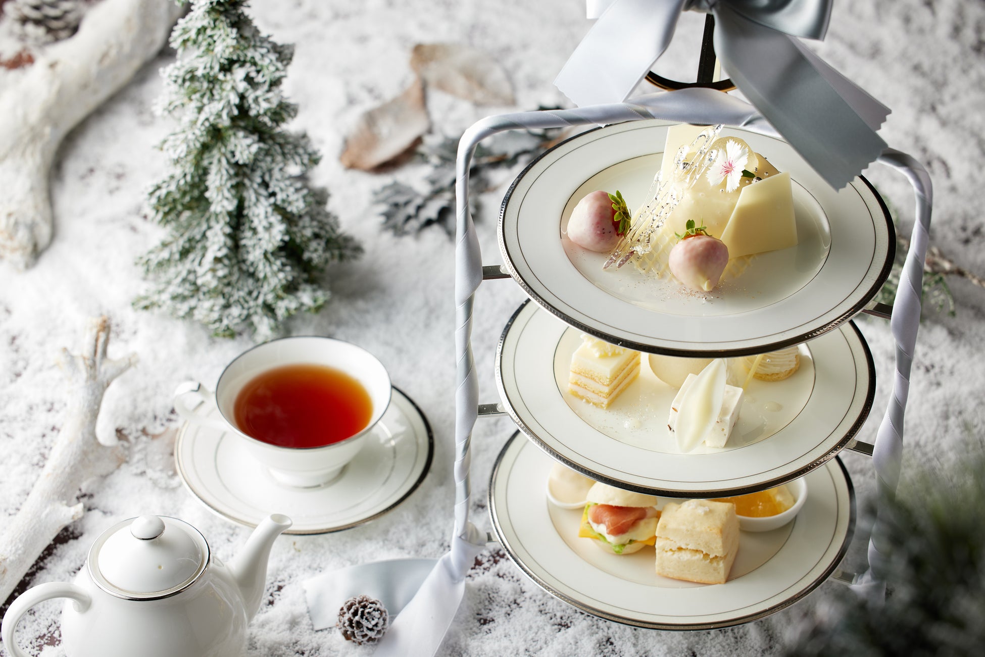 上品なホワイトカラーを基調にした幻想的な雪景色を連想させるアフタヌーンティーで、冬の優雅なティータイムをお過ごしください。