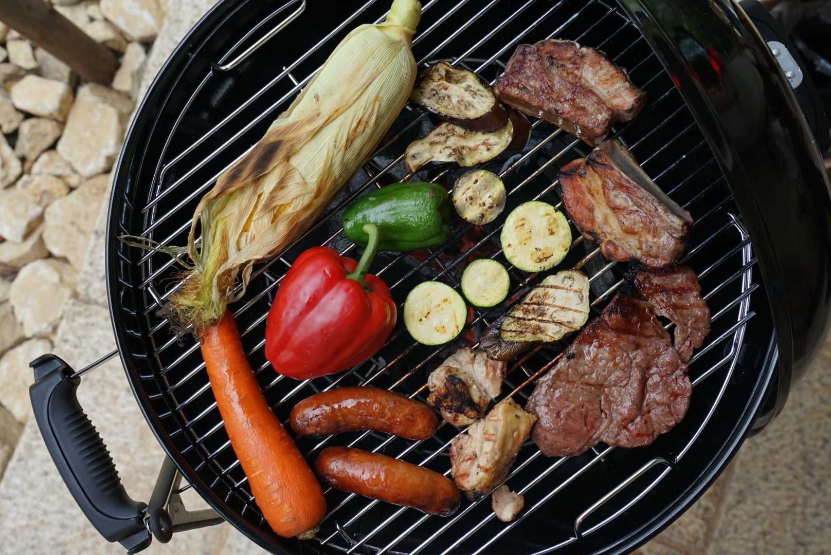 スペアリブ・ウインナー・鶏もも肉・季節の焼野菜・焼おにぎり・ポテトフライ