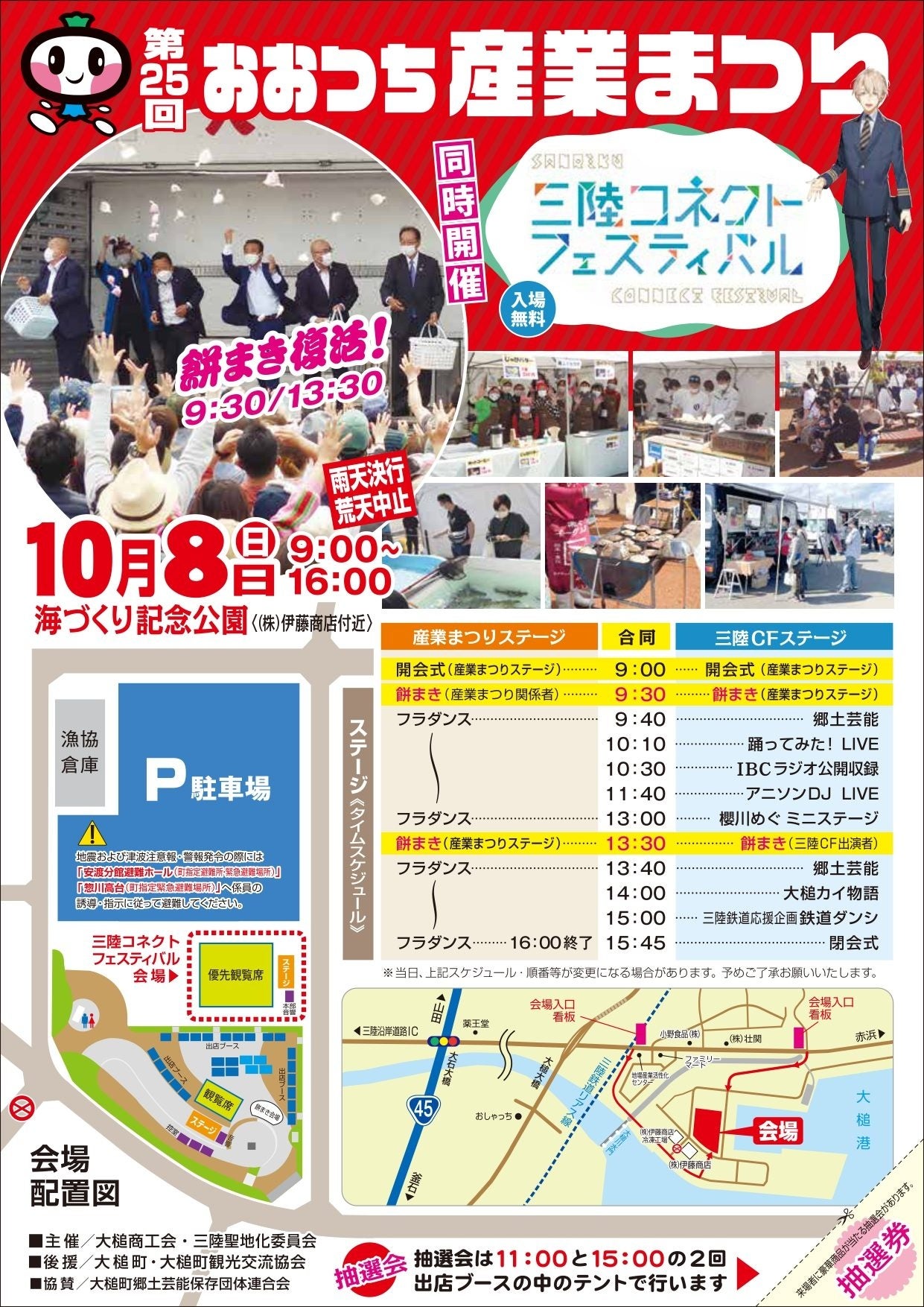 10月8日(日)には、大槌町の海づくり記念公園にて「第25回おおつち産業まつり」と「三陸コネクトフェスティバル」も開催されます。