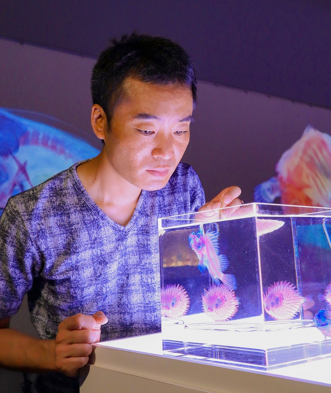 大学在学中に、研究用の透明骨格標本に魅せられ独自に制作を開始。