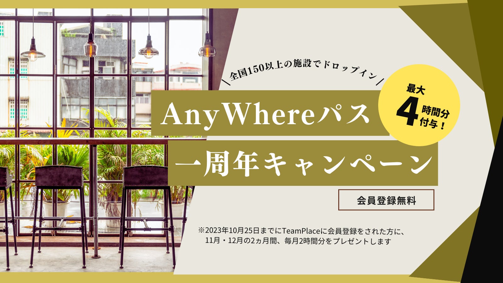 ・10月25日(水)までにご登録いただいた場合、11月と12月の2ヶ月間、各月2時間分の『AnyWhereパス』を11月1日と12月1日にそれぞれ付与いたします。