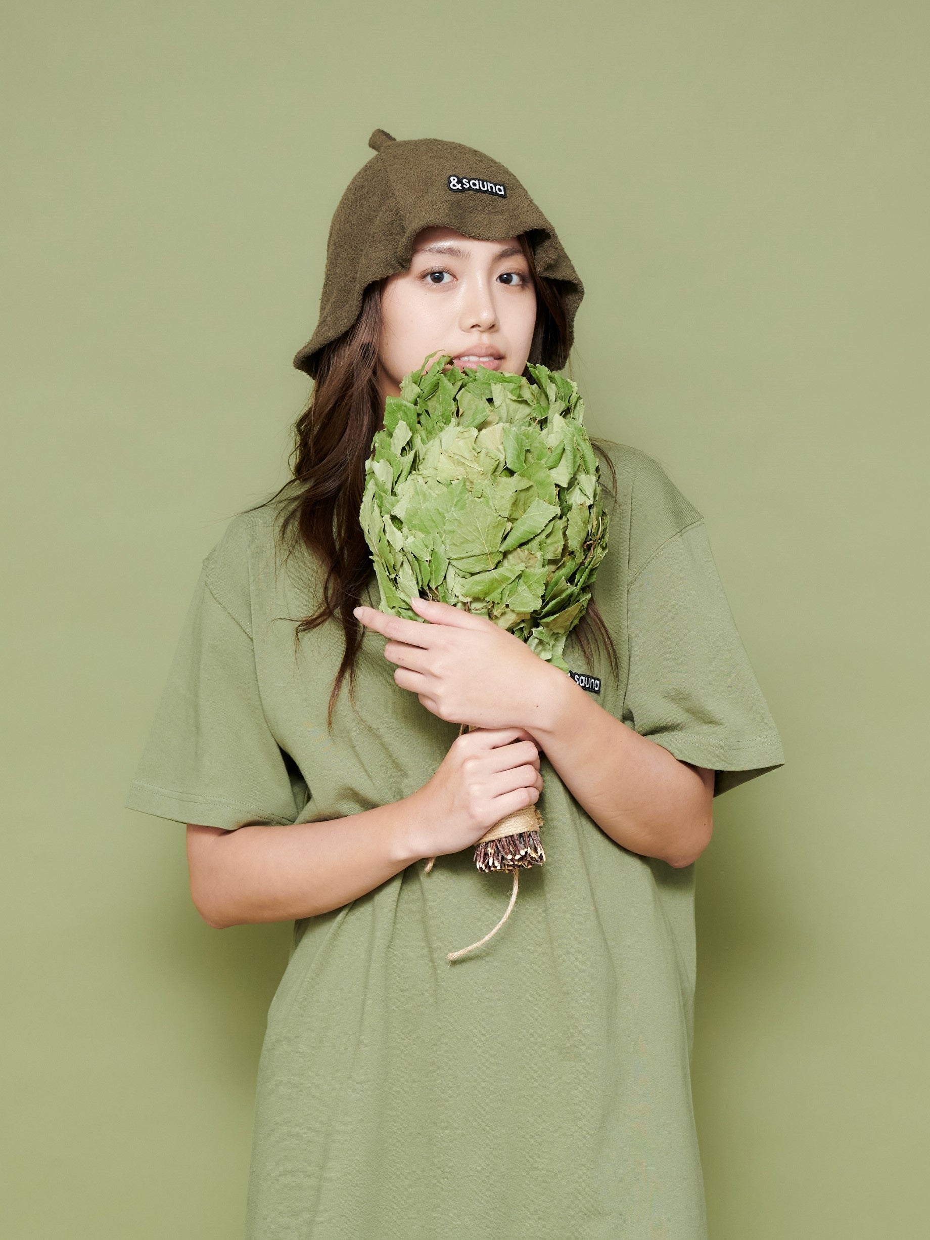 シルエットとサイズ感にこだわり、肌触りの良い両面パイル生地を使用したサウナハット。