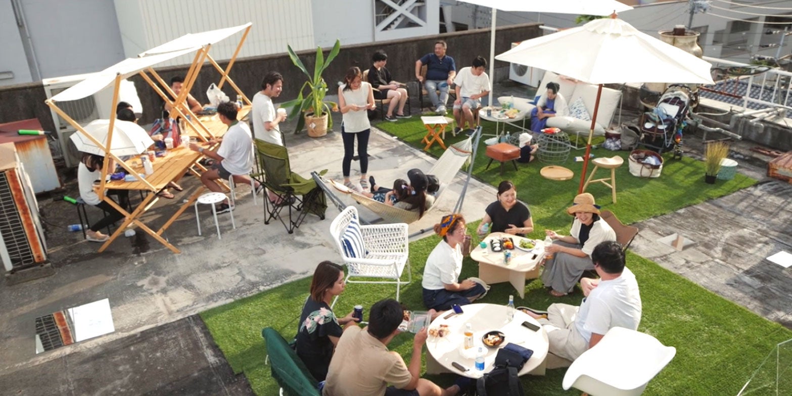定期開催型のイベントとして、屋上を貸して頂き、小さな都市公園を設え、テイクアウトを食べる場所・各々が自由にくつろげる場所として場作りをしています。