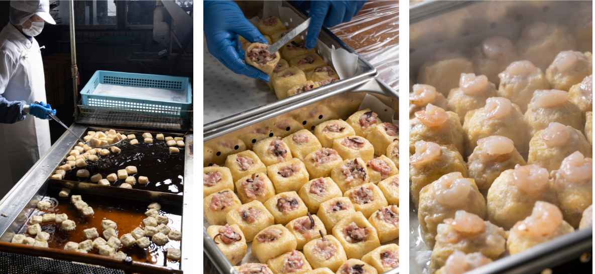 「岩手県雫石町のお土産になるような商品を作りたい、と福岡社長からお声がけいただき、アドバイザーを務めさせていただきました。使用する皮は福岡豆腐店の油揚げ、包む餡も岩手県産の食材を厳選。食材の旨味を吸収する油揚げを皮に使用しているので、ほおばった瞬間に旨味が口の中に広がる感覚を楽しんでいただける、最高の商品になりました。」