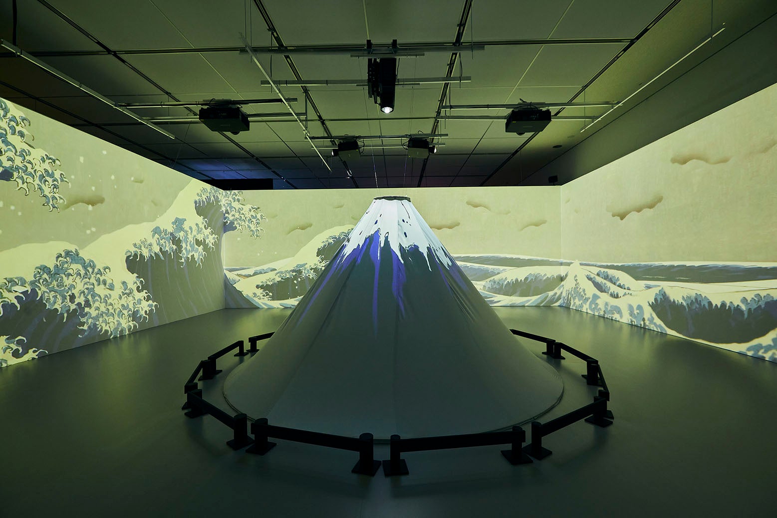 この催しは、テレビ愛知開局40周年記念特別事業として開催したもので、葛飾北斎、歌川国芳、歌川広重、喜多川歌麿、東洲斎写楽、歌川国貞など世界的な浮世絵師の作品300点以上をもとに、3DCGアニメーションやプロジェクションマッピングを駆使して大人から子どもまで楽しめるグラフィカルなデジタルアート作品として描き、9つの立体映像空間で浮世絵の世界に没入できる体感型デジタルアートミュージアムです。