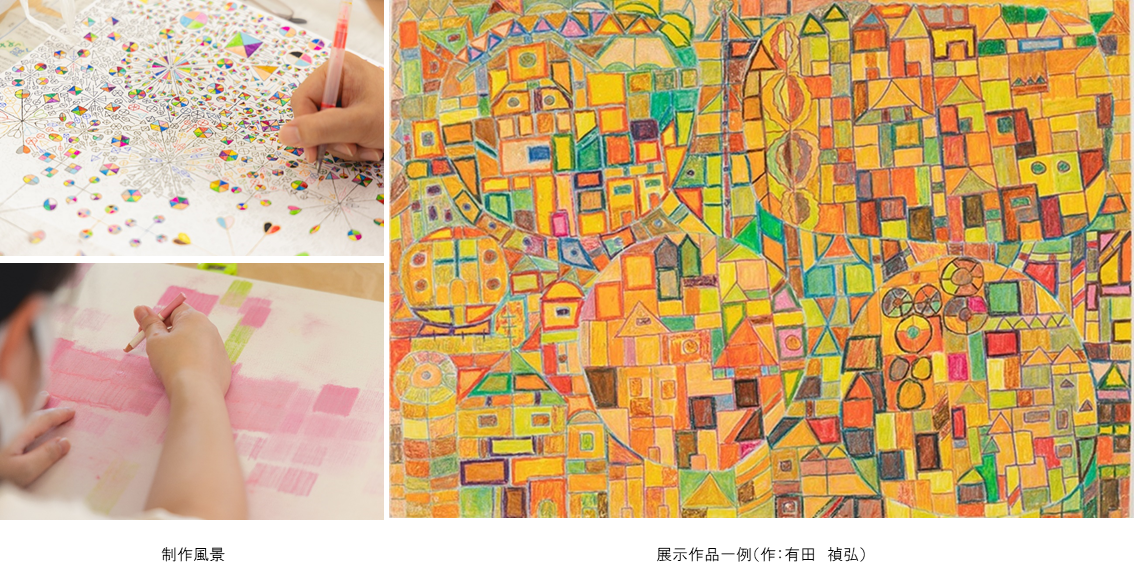 本展は8月に開催された金沢展に続き今年度3回目の実施となり、京都で活躍するアウトサイダーアーティストの出展が決定。水彩や切り絵など、さまざまな技法で制作した地元アーティスト3名8作品を含む、計22作品をご覧いただけます。