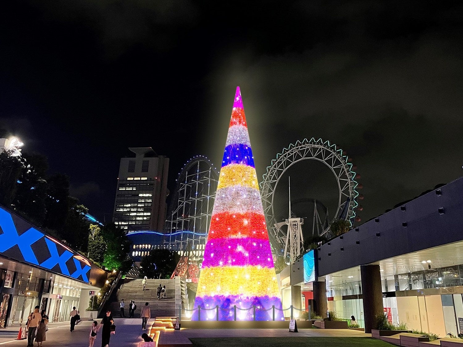 高さ15mの大きなツリーが今年も登場!LEDライトで様々な色に輝く様子を、リニューアルした芝生広場でリラックスしながら楽しめます。サイネージと連動した迫力ある空間演出も予定しています。