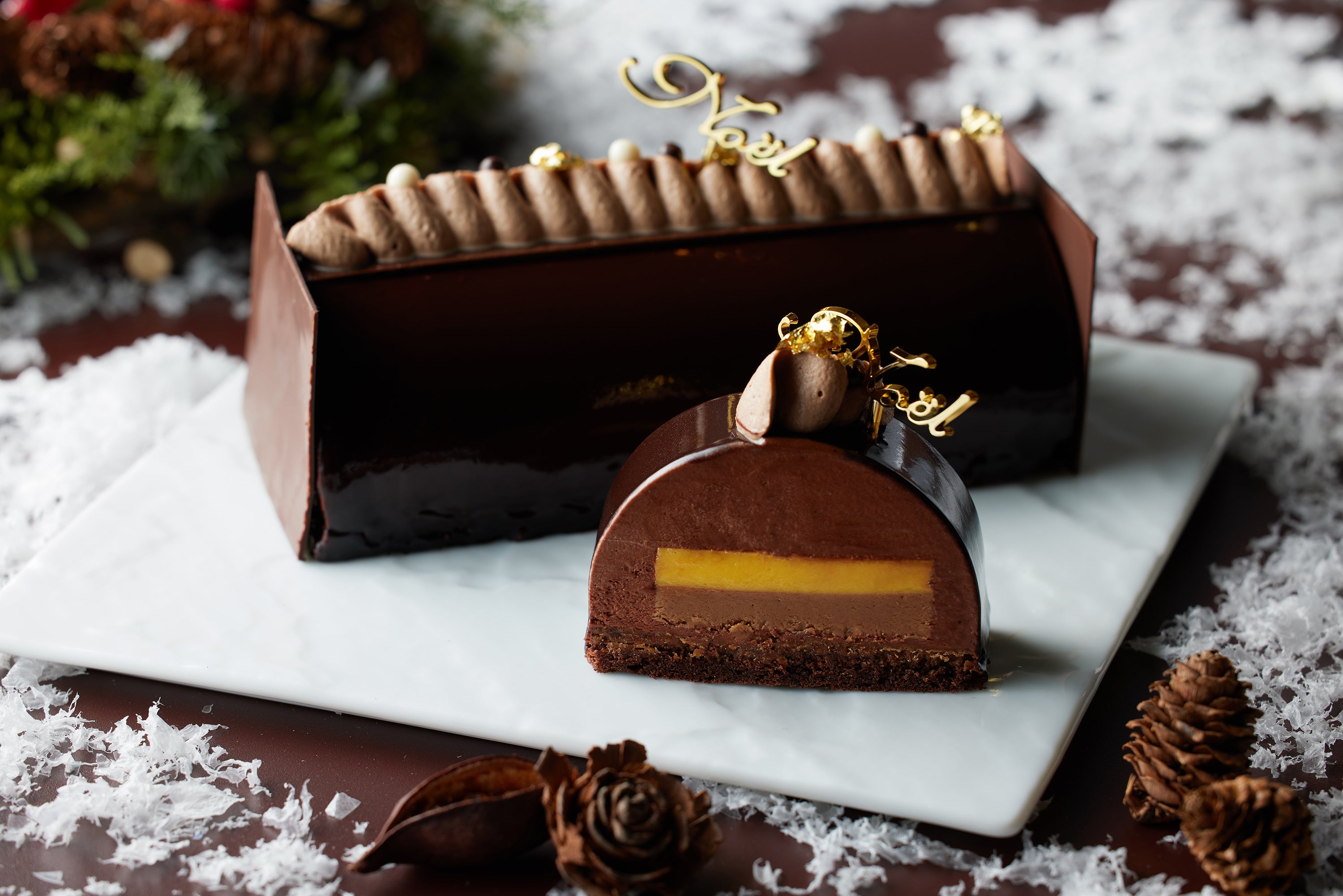 苦みのあるチョコレートムースにオレンジの香り、香ばしく濃厚なヘーゼルナッツを加えたブッシュ・ド・ノエルです。薄く焼き上げた生地を砕いたフィヤンティーヌを加え、食感のアクセントをお楽しみいただけます。
