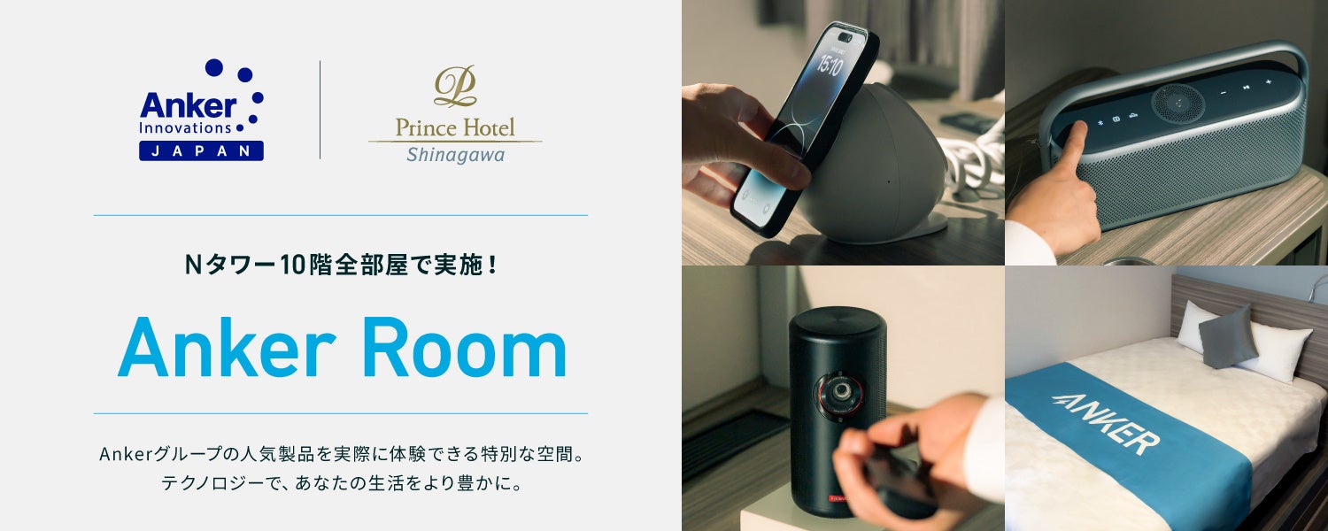 2023年10月11日(水)より、品川プリンスホテルのNタワーの10階を「Anker Collaboration Floor」として、フロアの全24室に宿泊者体験用のAnkerグループのモバイルプロジェクターやBluetoothスピーカー、マグネット式ワイヤレス充電ステーションを設置した「Anker Room」を展開開始。