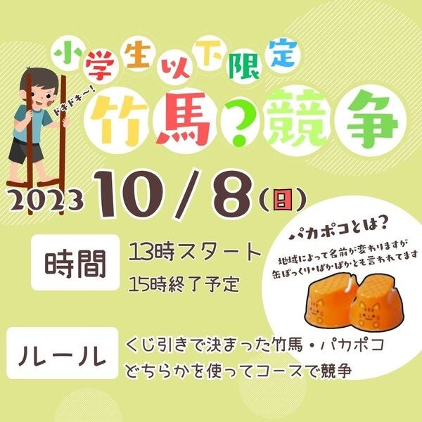 はじめての子供たちもチャレンジできます。小さい子向けにパカポコも用意しています。