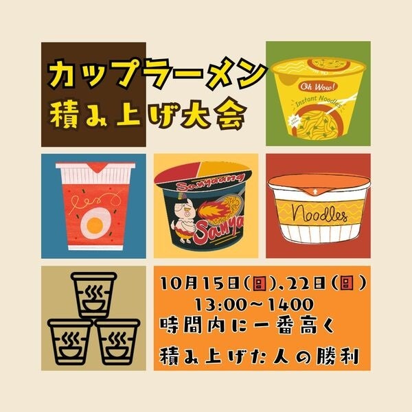 アンバランスなカップ麺もあえてご用意しております。一番高く積み上げた方には、積み上げた分のカップ麺をプレゼントします。