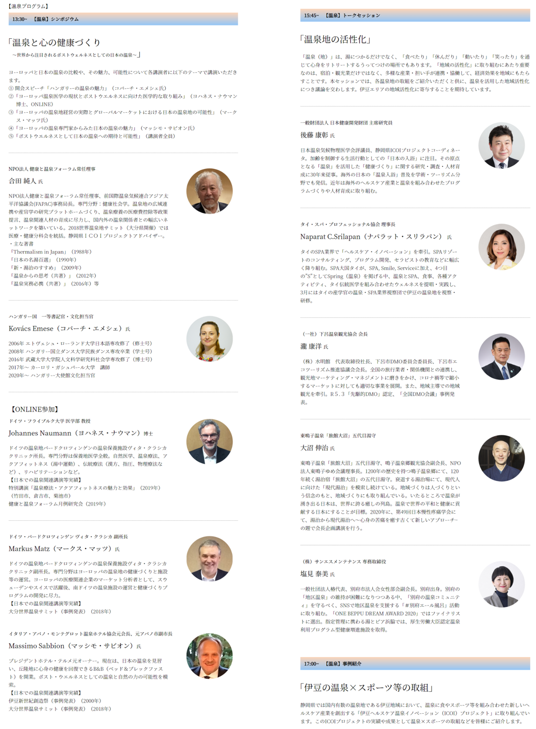 ・テーマ:「地域DNAから見たポストウェルネス〜食と温泉の再定義と未来への挑戦〜 」