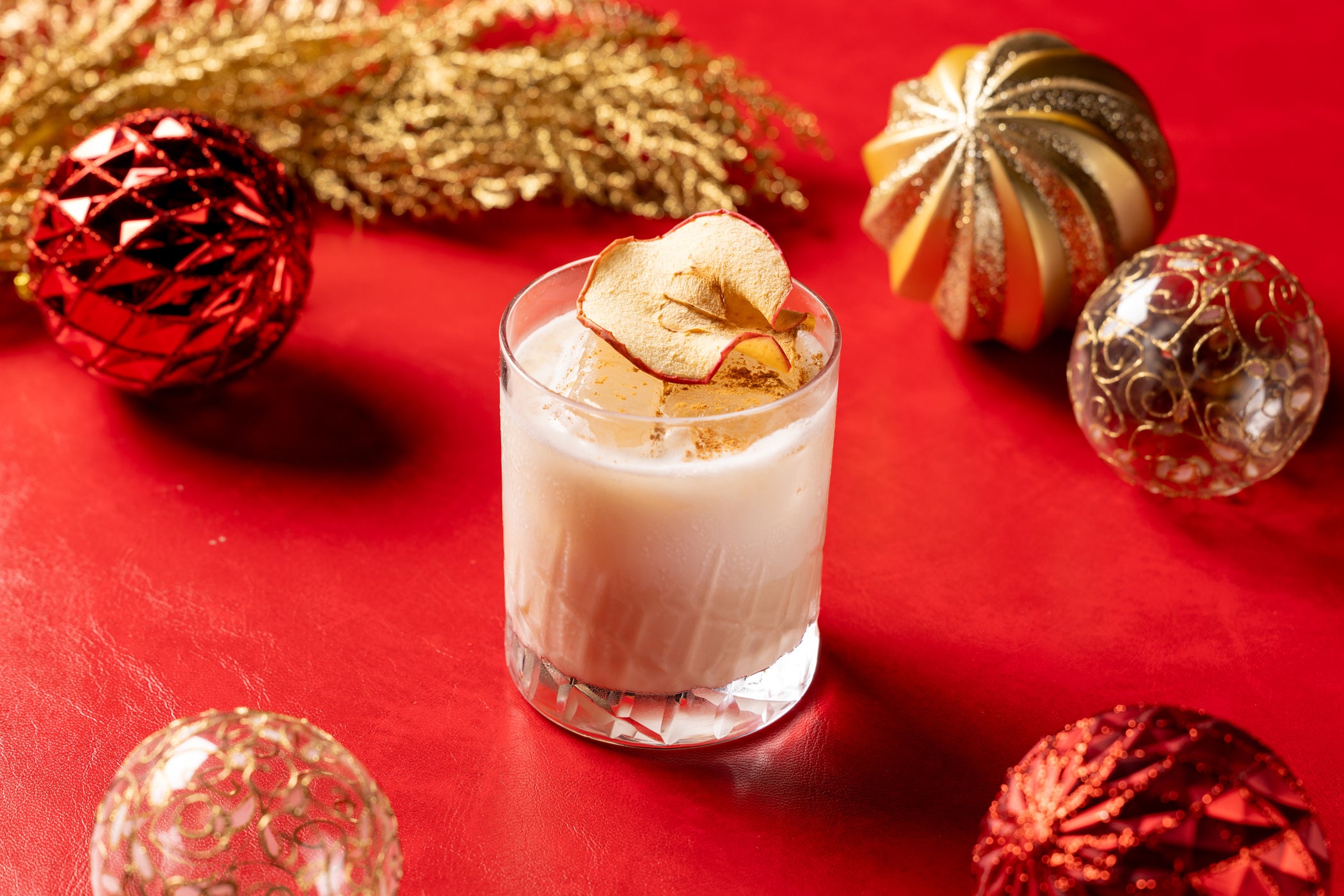 シナモンの香りを移したラムに、卵黄のリキュール、クローブなどを加えた自家製のアップルジャムをあわせ、トップにドライアップルとシナモンをあしらいました。アメリカの家庭的なお菓子であるアップルパイを大人が楽しめるエレガントな味わいへと昇華させたスパイスが豊かに香るカクテルです。