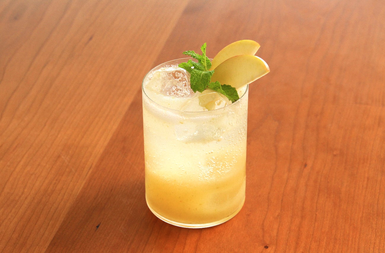 (地元小諸産のリンゴや自家製ジンジャーフレーバーを使ってアレンジした人気のクラシックカクテル、Highland Cooler in Autumn)