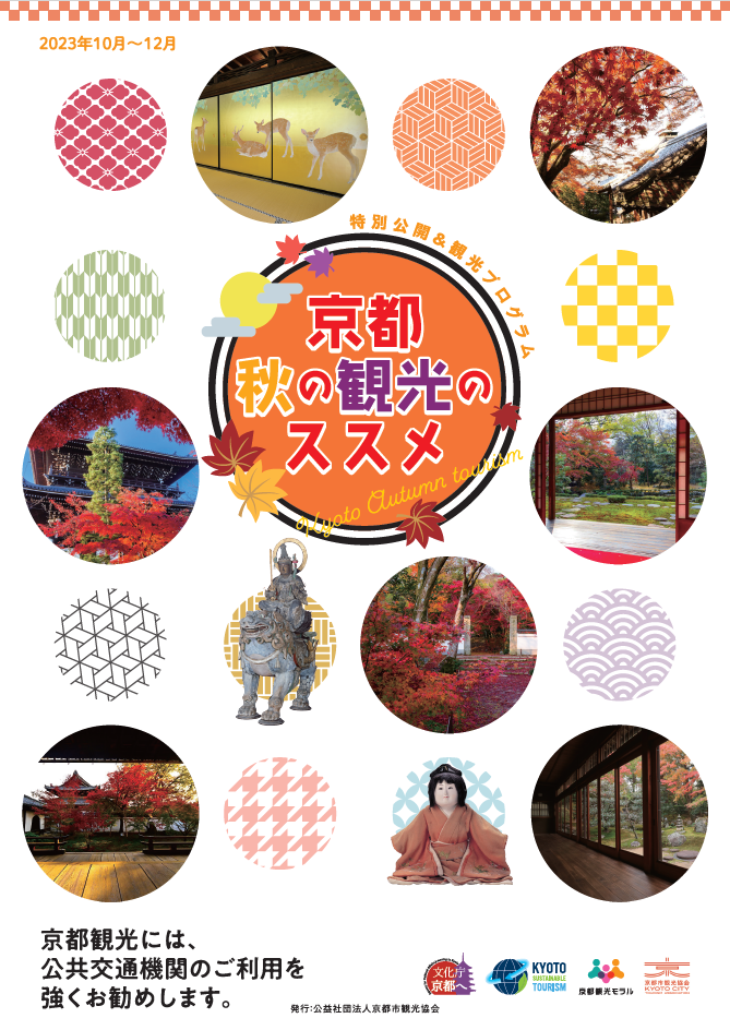 この度、混雑を避けて快適に京都観光を楽しんでいただくことを目的に、10月~12月に実施される多様なエリアにおけるイベントや、スマートに観光するためのお役立ち情報等をまとめたパンフレット「京都 秋の観光のススメ」を発行しますので、お知らせします。