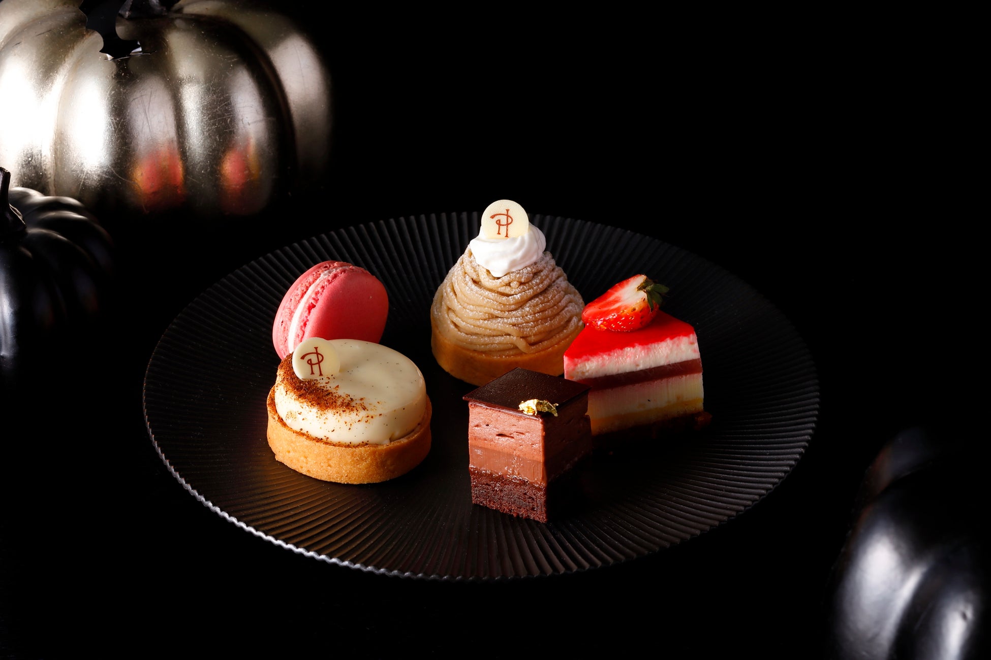 マロンクリームの中に、メレンゲに包まれた野ばらの実のコンポートが隠された「モンブラン ア マ ファッソン」や、クレームオショコラとムースショコラの2種のショコラの織りなす豊かな風味とともに、カカオ片入りプラリネとビスキュイショコラの食感がアクセントの「キャレマン ショコラ」などのシグネチャーケーキを中心にミニサイズでご用意しました。