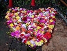 紅葉に染まる尾ノ内渓谷を色とりどりのダリアで飾り付けるボランティア
