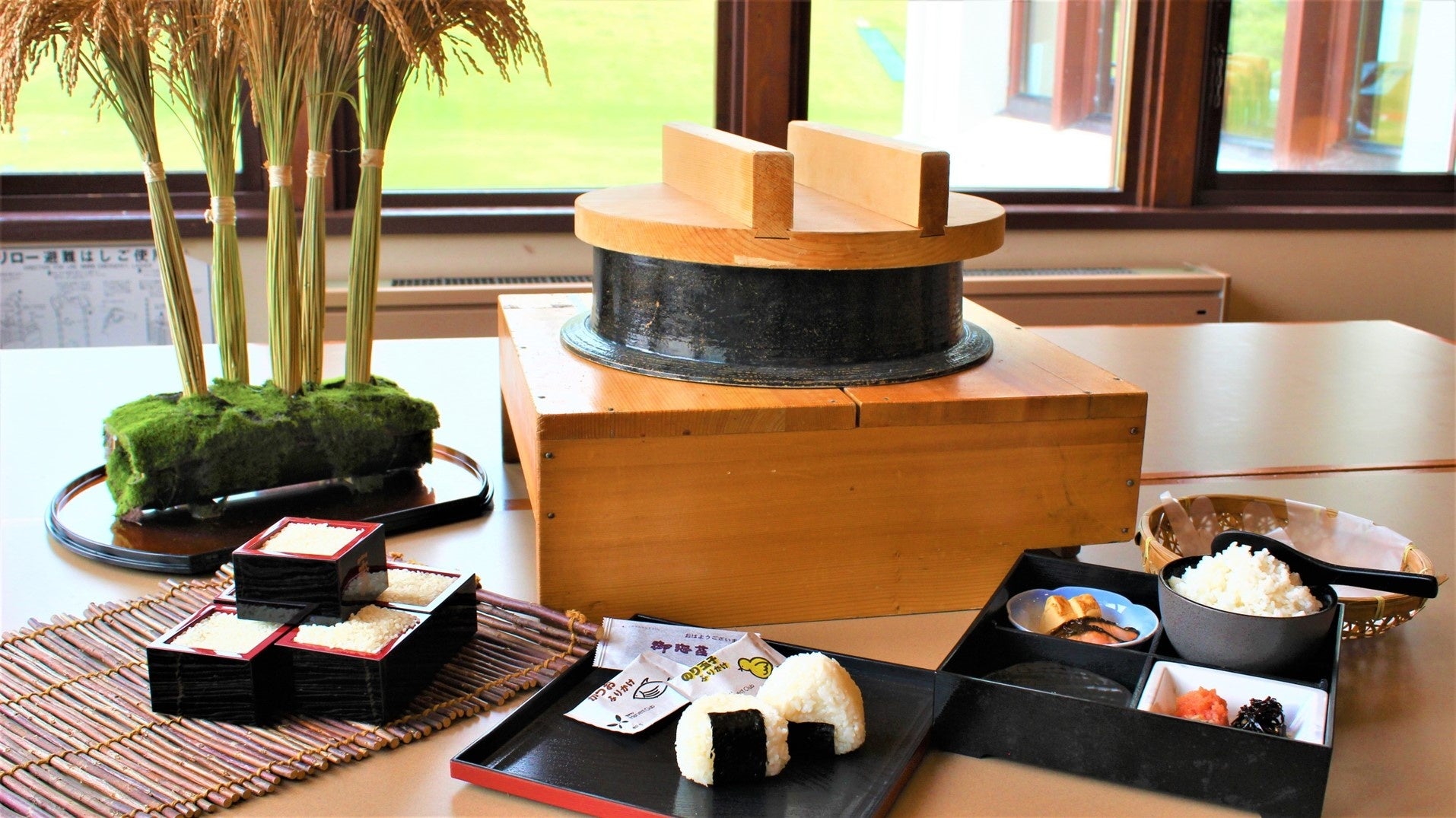 ※「地元のお米でおにぎり作り体験」は朝食バイキング内の 1 メニューです。その他バイキングメニューは日によって変更いたします。