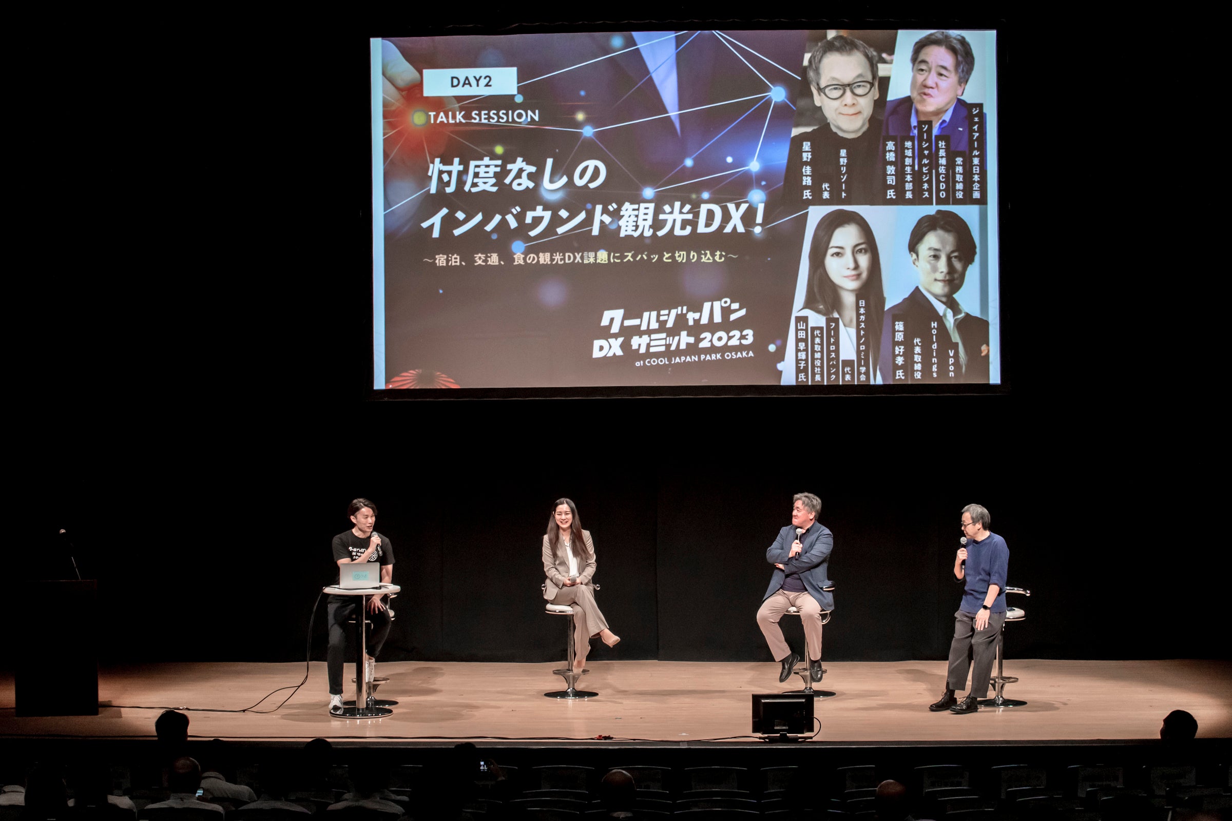 星野リゾート代表 星野 佳路 氏が登壇したセッションでは、観光DXをテーマに、宿泊、交通、食といった観光の主要テーマにおいてDXは進んでいるのか、忖度なく語らいました。
