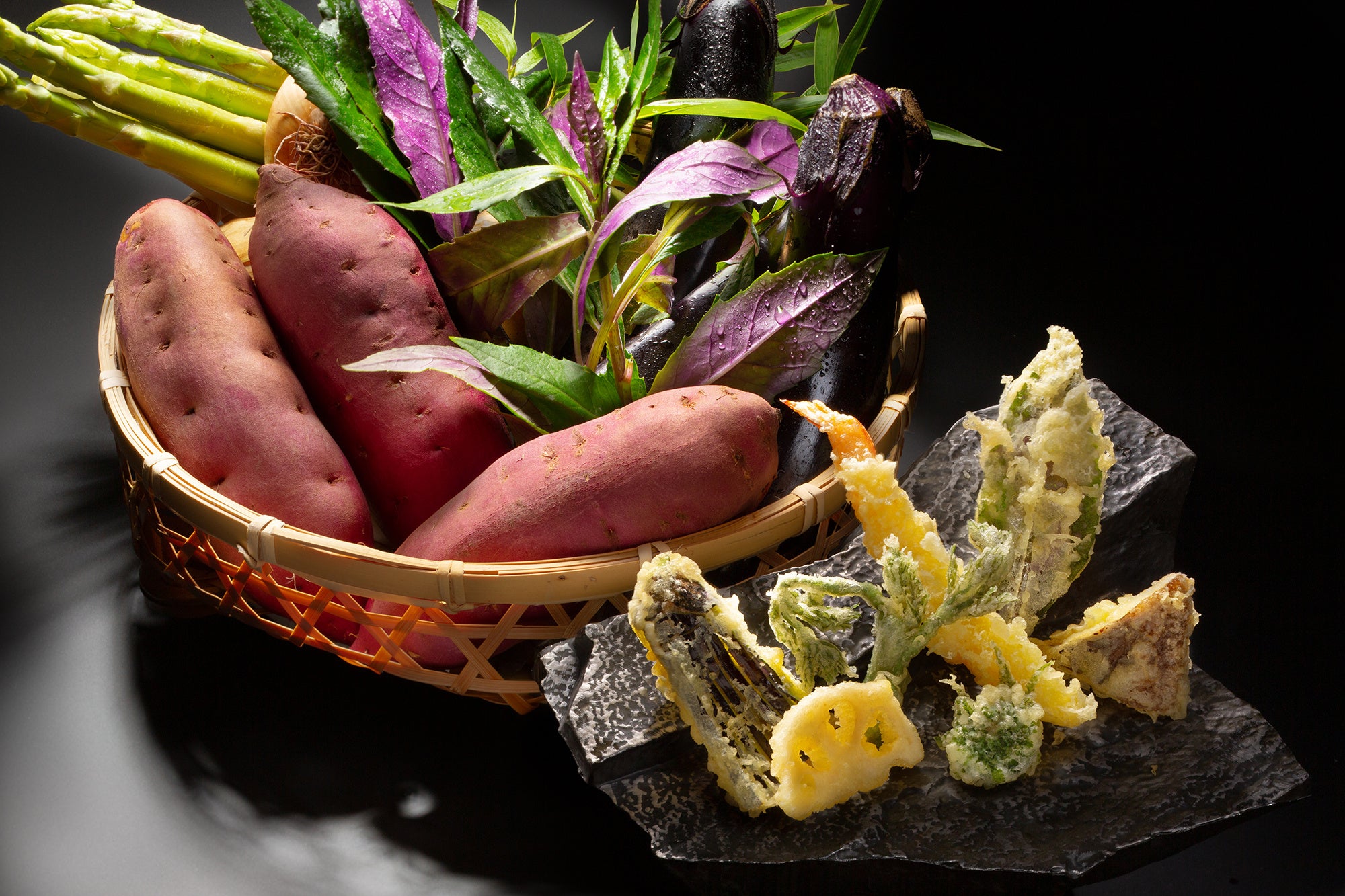 甘海老や輪島ふぐ、のどぐろ、ズワイ蟹、寒ブリなどの海の幸、五郎島金時や金時草などの加賀野菜は、揚げたて天ぷら自慢の会席料理でお召し上がりいただけます。