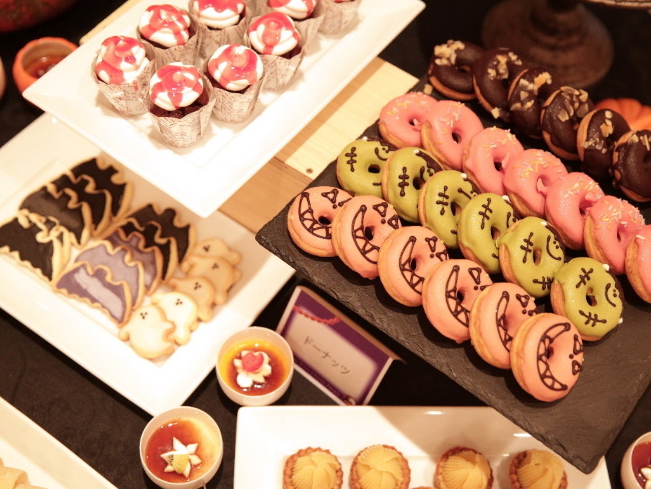 ホテルパティシエこだわりのハロウィンスイーツとグルメ、ドリンクが食べ飲み放題で楽しめます。大人の方向けのハロウィン・アルコールドリンクも一部有料にて販売しております。