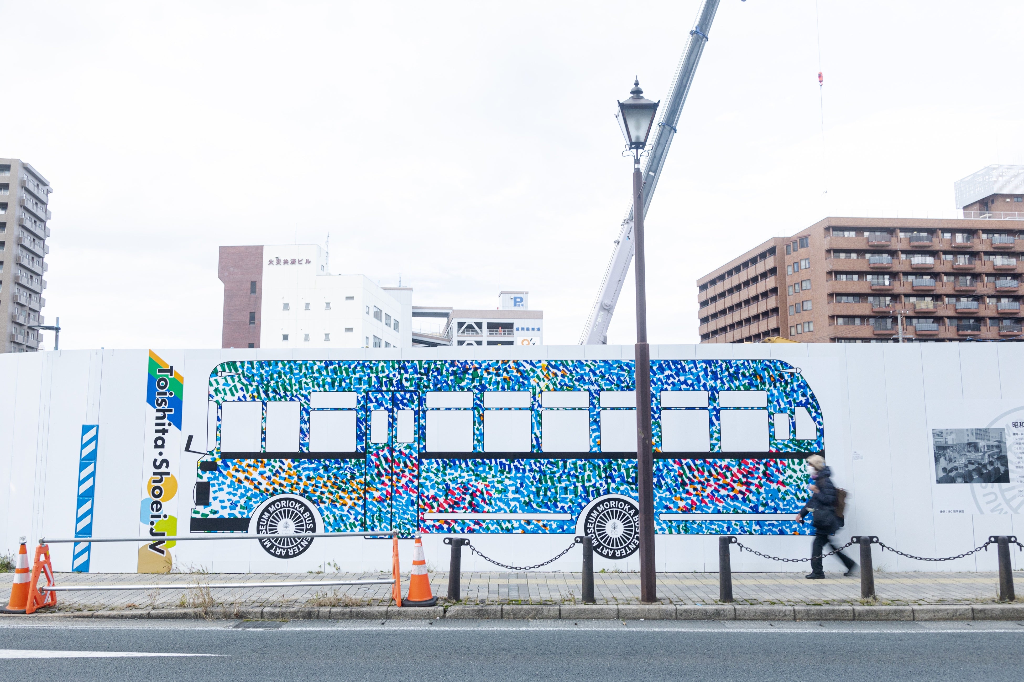 2021年7月。盛岡新バスセンターの建設工事が始まりました。工事現場と街の人たちの間にあったのは、大きな仮囲いです。