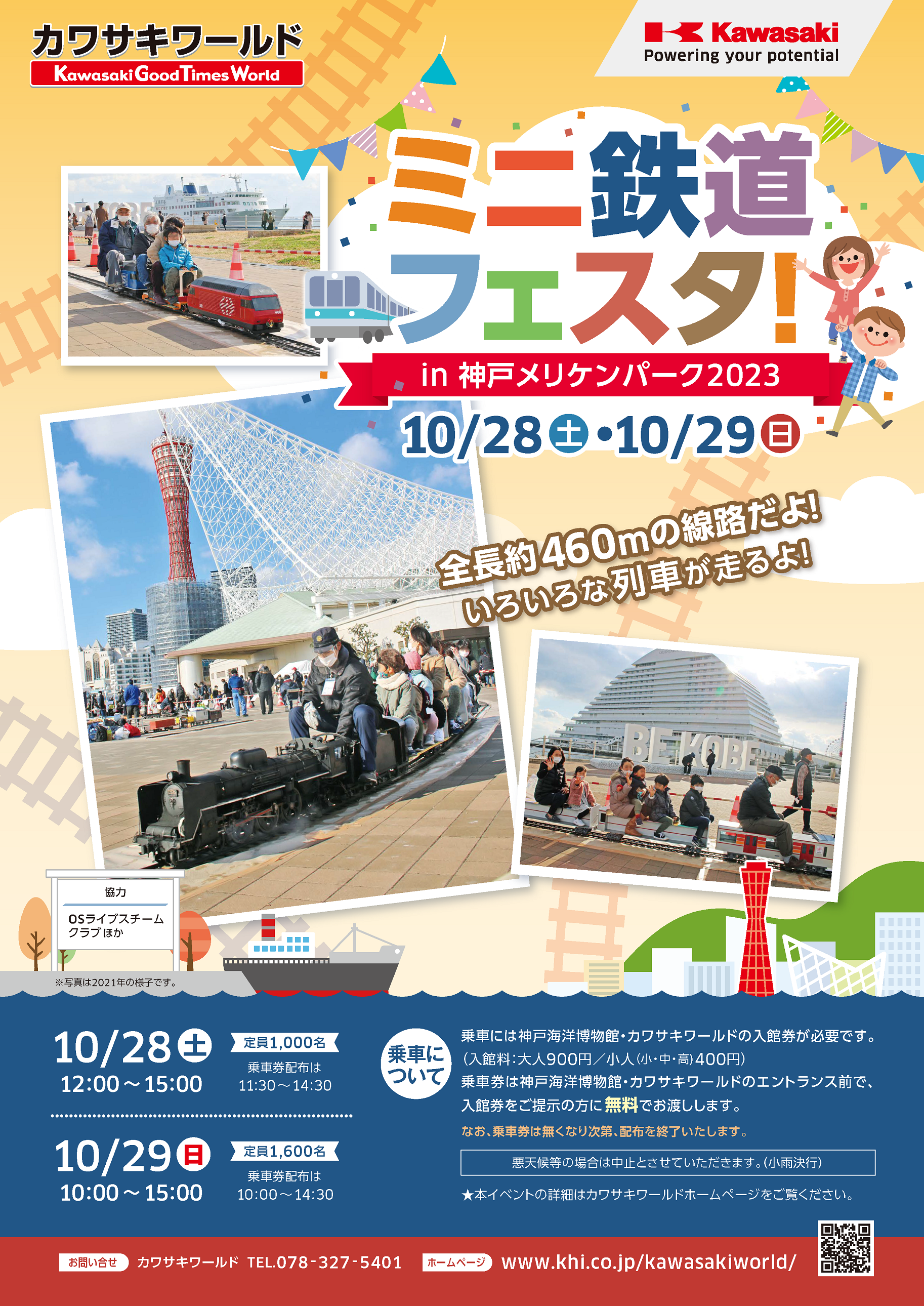本イベントは、神戸市のメリケンパークに敷かれた線路を走る、蒸気機関車や新幹線など、さまざまな種類のミニ鉄道に乗車できるイベントです。