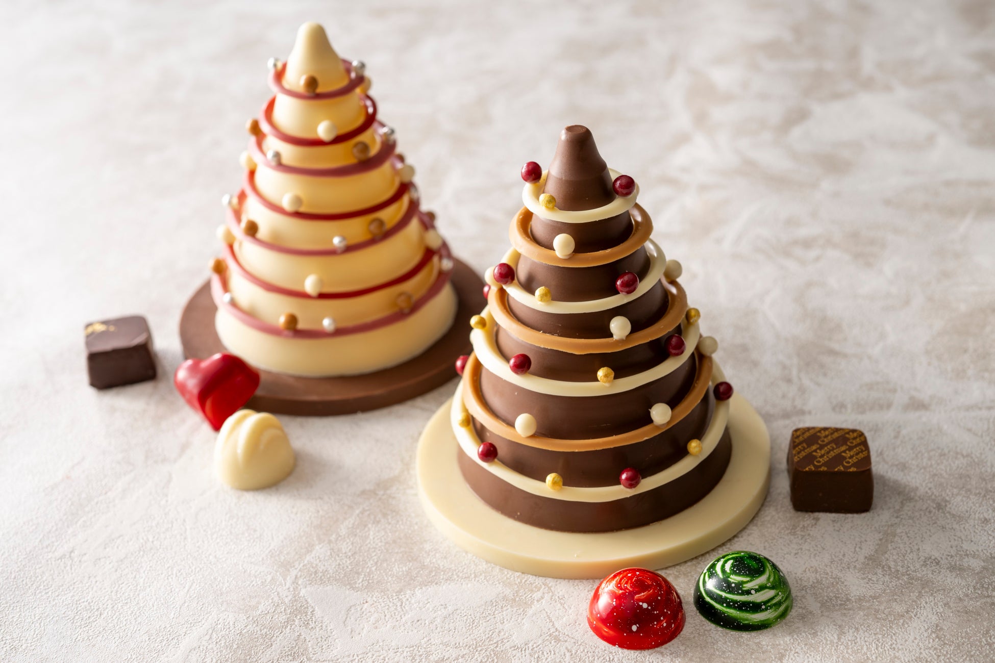 高品質なフランス産のクーベルチュールチョコレートを使用した、愛らしいクリスマスツリー型のチョコレート。中からボンボンショコラが現われる、クリスマスのワクワク感が詰まったショコラティエの遊び心あふれる新作ショコラです。