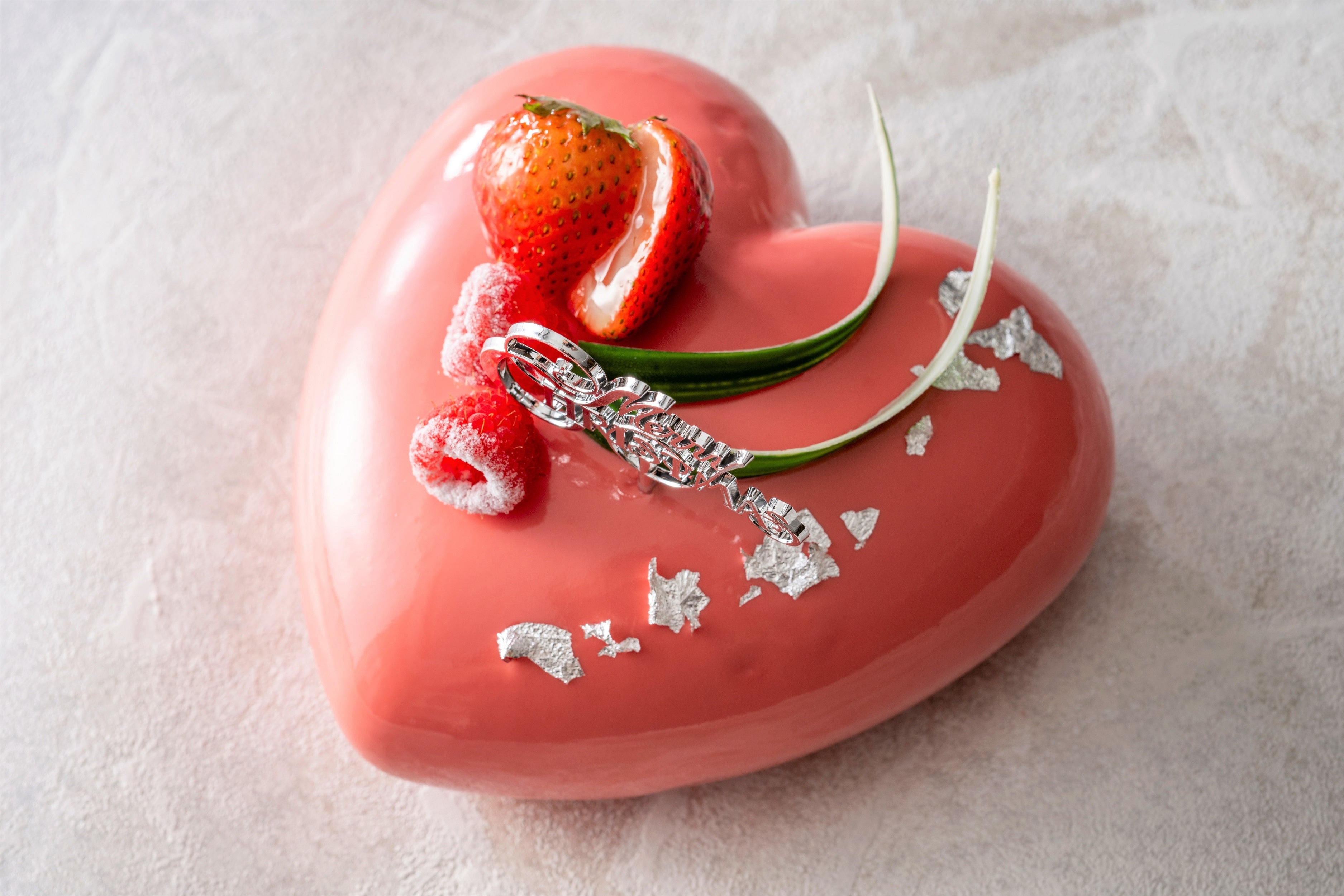 鮮やかなピンク色とキュートなハート型がクリスマス気分を盛り上げる今年の新作ケーキ。アーモンドが香るフィナンシェ生地に、酸味のある柚子のジュレと苺のジュレを重ね、マスカルポーネチーズを加えたヴァニラムースで包みました。コク深くクリーミーなムースと爽やかな柚子の酸味が絶妙なバランスを織り成し、食後にも軽やかに楽しめるクリスマスケーキです。