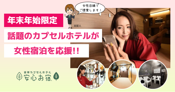 当ホテルは「よくばりなホテル」をコンセプトに東京都内5店舗・名古屋・京都に全7店舗を構え、京都店のみ男性・女性のお客様のご利用を可能とし、名古屋・東京都内の店舗においては、男性専用のカプセルホテルとして営業しております。兼ねてから、東京都内を中心に女性のお客様より「東京都内の安心お宿に泊まってみたい!」「体験したい!」というお声を多数頂戴しておりましたので、そんな、お客様からの「あったらいいな」に応えるべく、「安心お宿新橋汐留店」を期間限定で女性専用の施設として営業いたします。期間中は従業員全員も女性を配置し、女性目線で選んだ無料サービスを多数ご用意いたします。年末年始に各所で開催が増える大型イベント時など、都心で駅近の「安心お宿新橋汐留店」を是非ご活用ください。