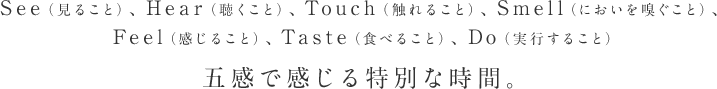 日々の生活で張りつめた気持ちを緩め、そして五感を研ぎ澄ます。ヴィラに届く潮の香り、波の音に包まれて見上げる星空、明け方にトレイルで深く吸い込む緑と土の香り、散歩に出かける犬たちの嬉々とした後ろ姿、朝市に並ぶ新鮮な野菜や魚介類が放つ色彩。