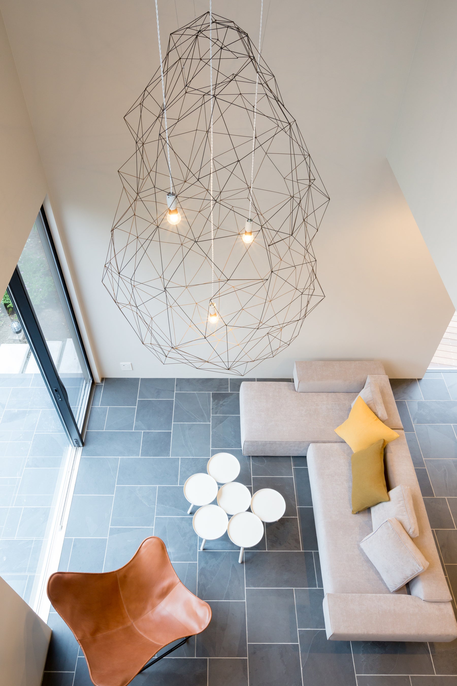 静寂さが漂う吹き抜けの空間には、シンプルながらデザイン性に富んだ調度の数々。2階のライブラリースペースで、読書に耽るも良し、デイベッドでうたた寝するも良し。