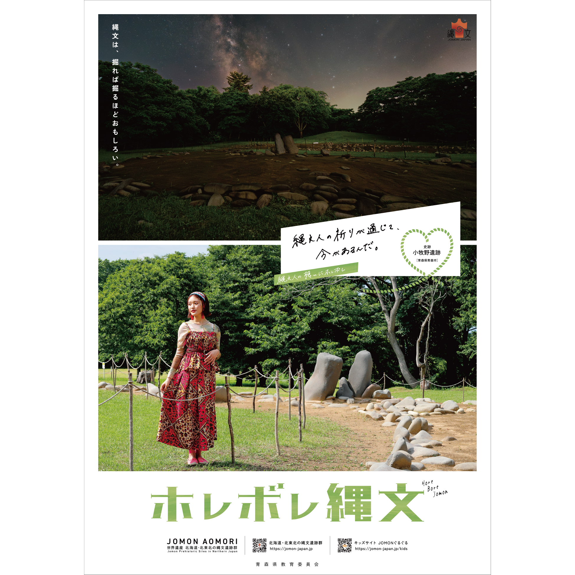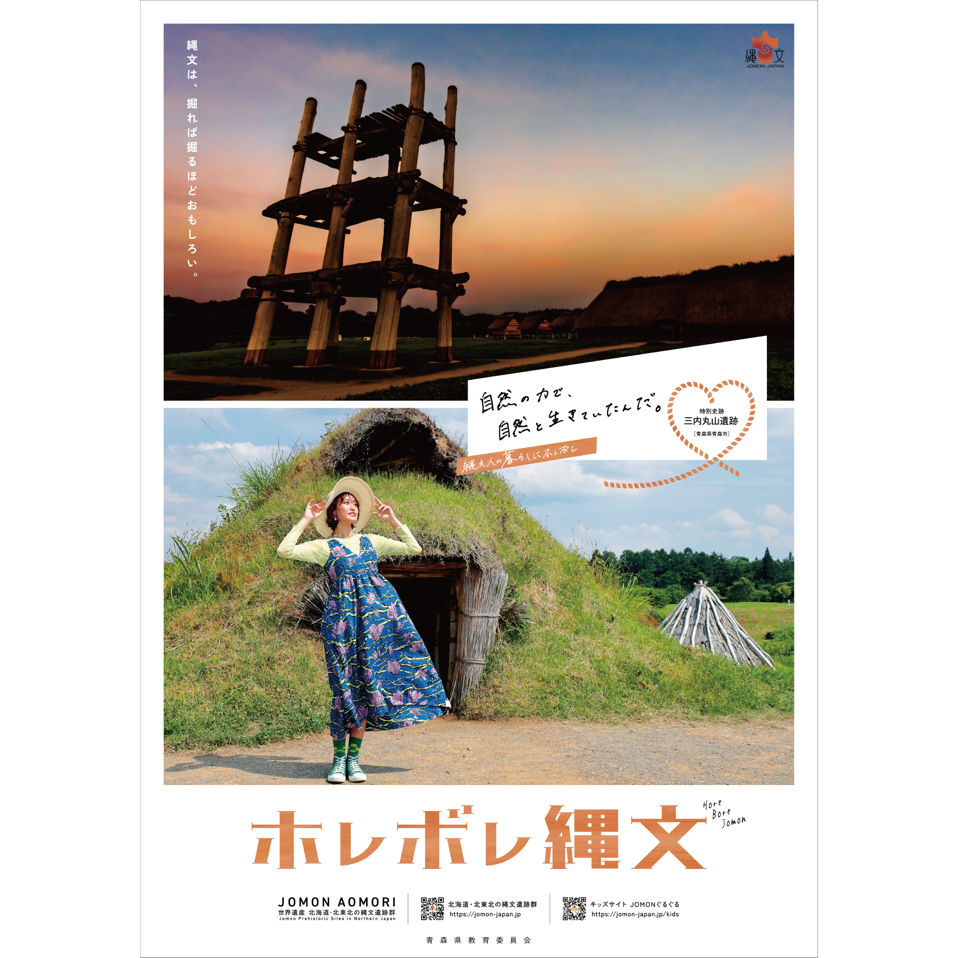 掘れば掘るほど⾯⽩い、思わず惚れ惚れしてしまう縄⽂の魅⼒を伝えるため開発したコピーです。これまで縄⽂好きや歴史好きをターゲットにしたプロモーションが多かった縄⽂遺跡群ですが、20代を中⼼に多くの⽅の⽀持を集める王林さんを起⽤し、ポスターや動画だけでなくスマホの壁紙の配布をするなど、今まで縄⽂に関⼼がなかった⽅々にも縄⽂の魅⼒が届くような表現を⽬指しています。