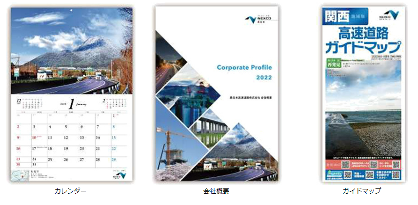 弊社カレンダー、「会社概要」冊子、SA等で配布する高速道路ガイドマップの表紙等の出版物やNEXCO西日
