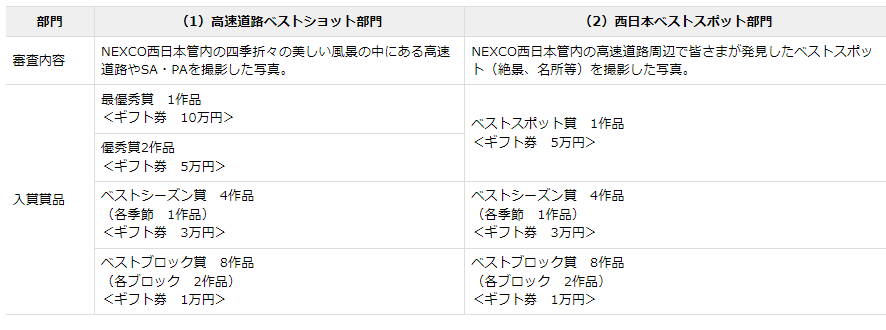 高速道路ベストショット部門、および西日本ベストスポット部門にご応募いただいた683作品から、厳正なる審査を経て、以下のとおり入賞作品が決定しました。入賞者のみなさま、おめでとうございます。