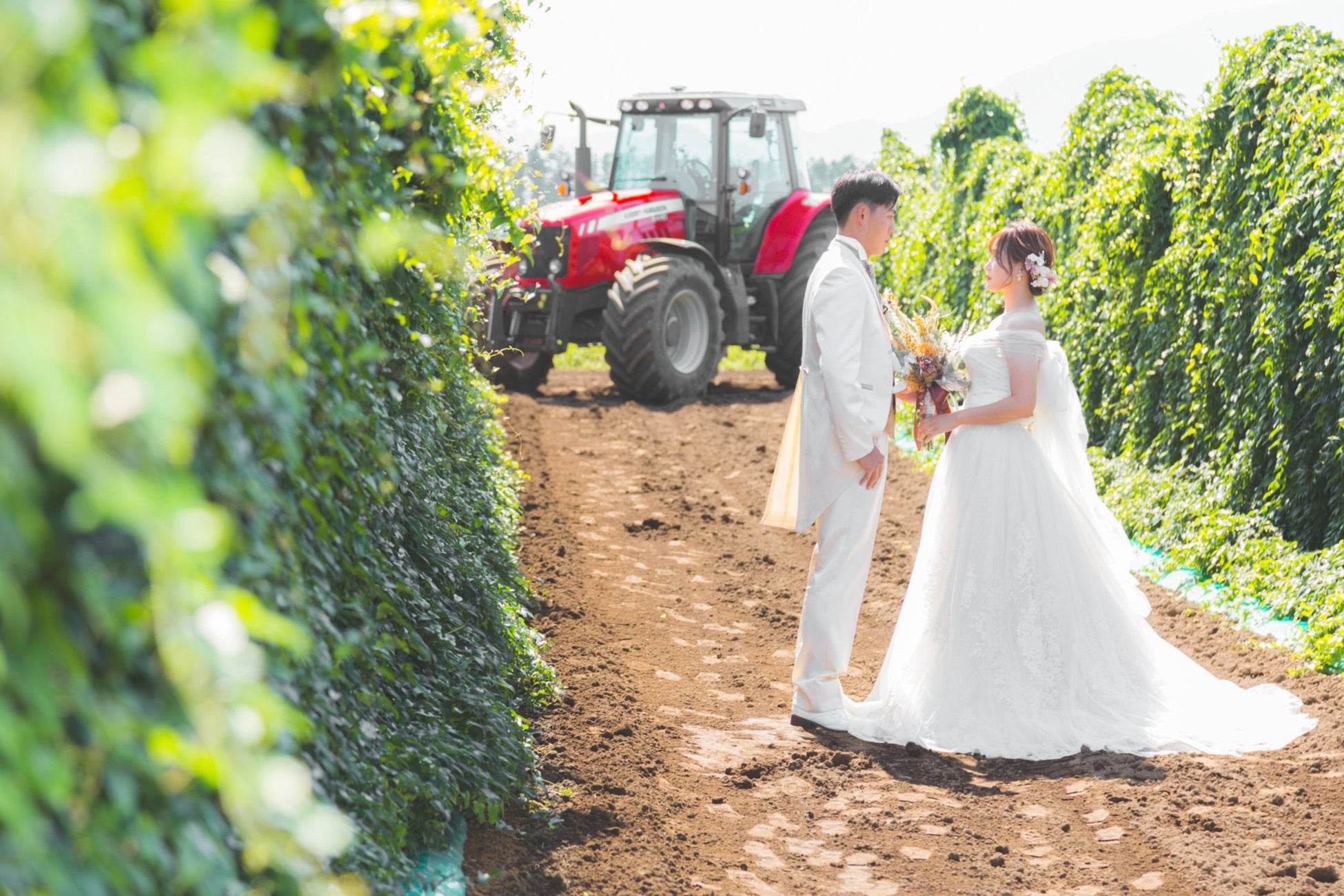 今回ご紹介する鳥本農場のご夫妻の撮影は農場を活かした十勝らしい広々としたウェディングフォトとなりました。