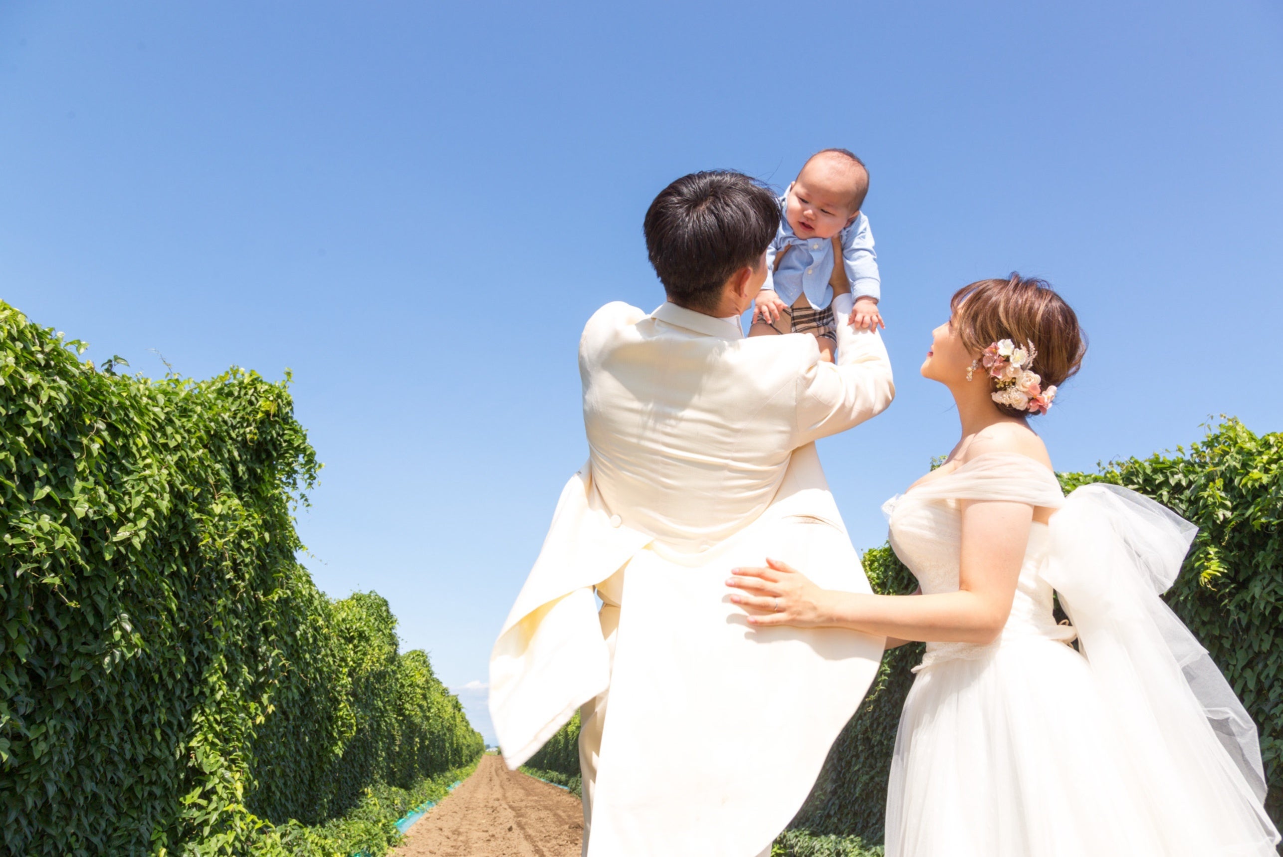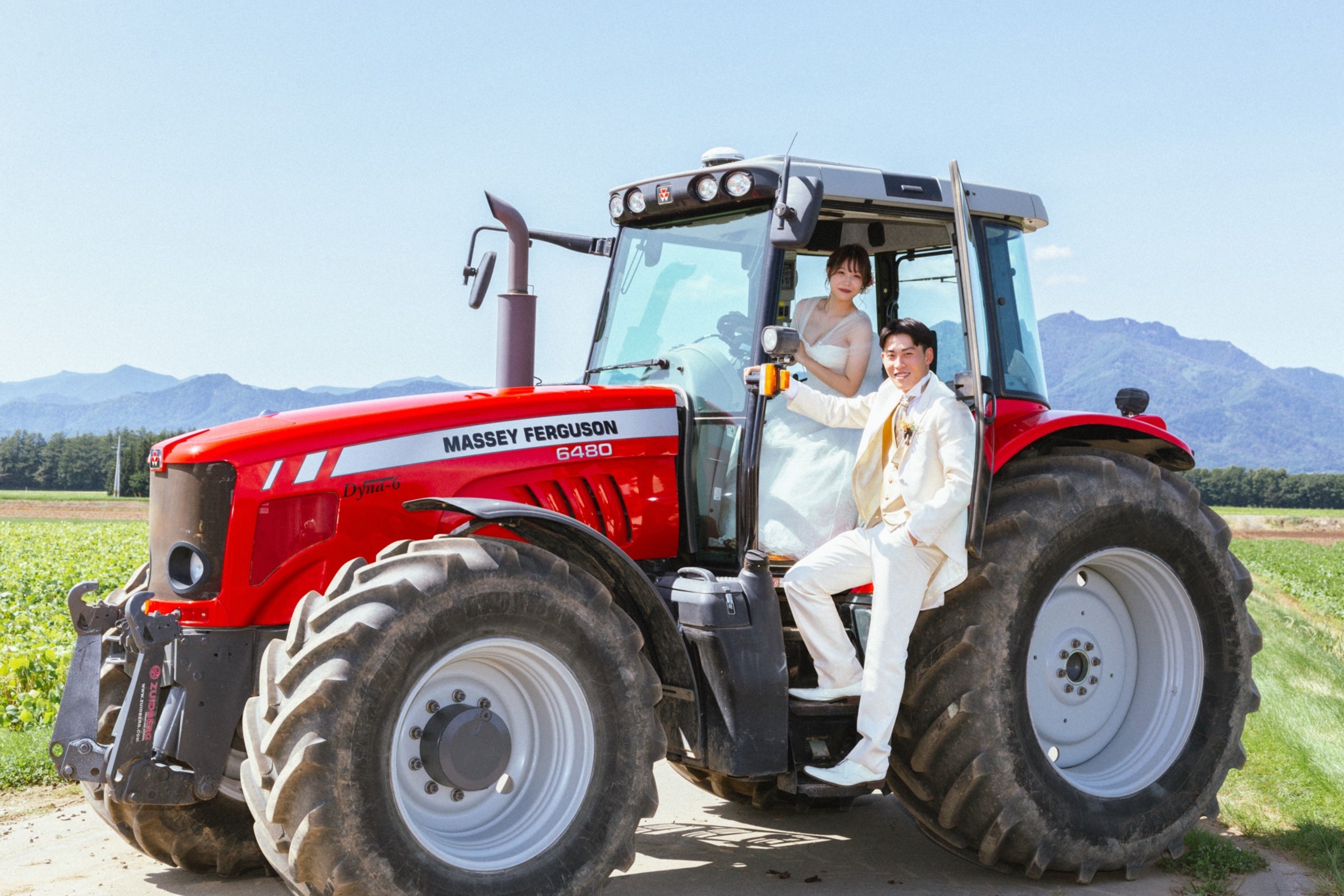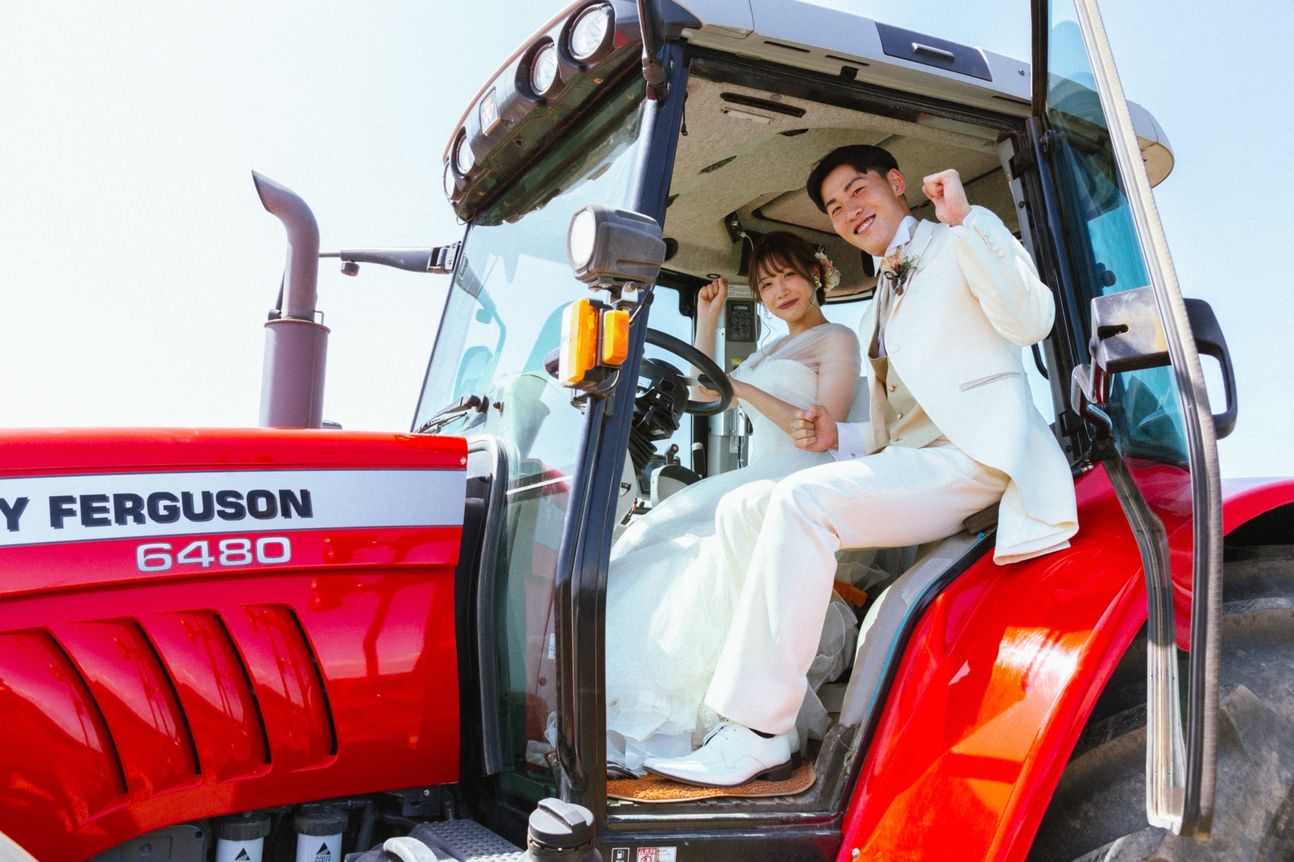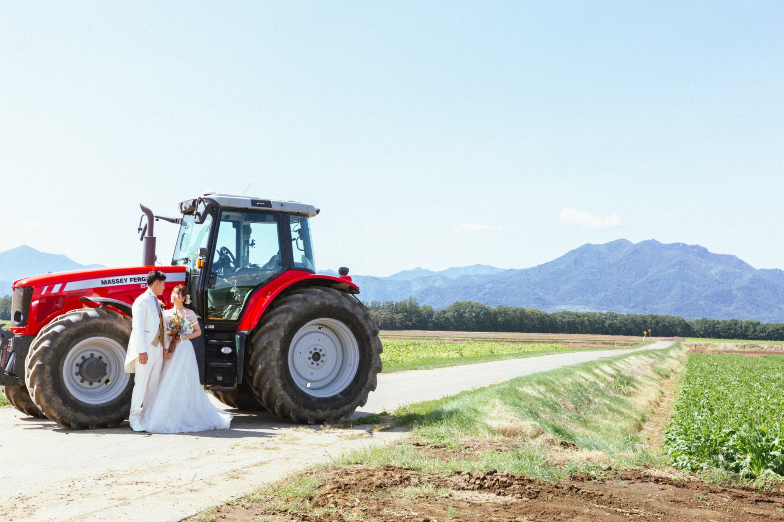 今回ご紹介する鳥本農場のご夫妻の撮影は農場を活かした十勝らしい広々としたウェディングフォトとなりました。