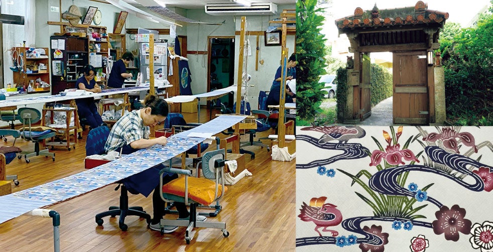 首里の豊かな水の恵みにより育まれた琉球の染め物「琉球びんがた」は王族や士族が着用していました。琉球王府の庇護のもと王朝時代から300年以上続く「城間びんがた工房」は、現在十六代目 城間栄市(しろま・えいいち)氏によって受け継がれております。