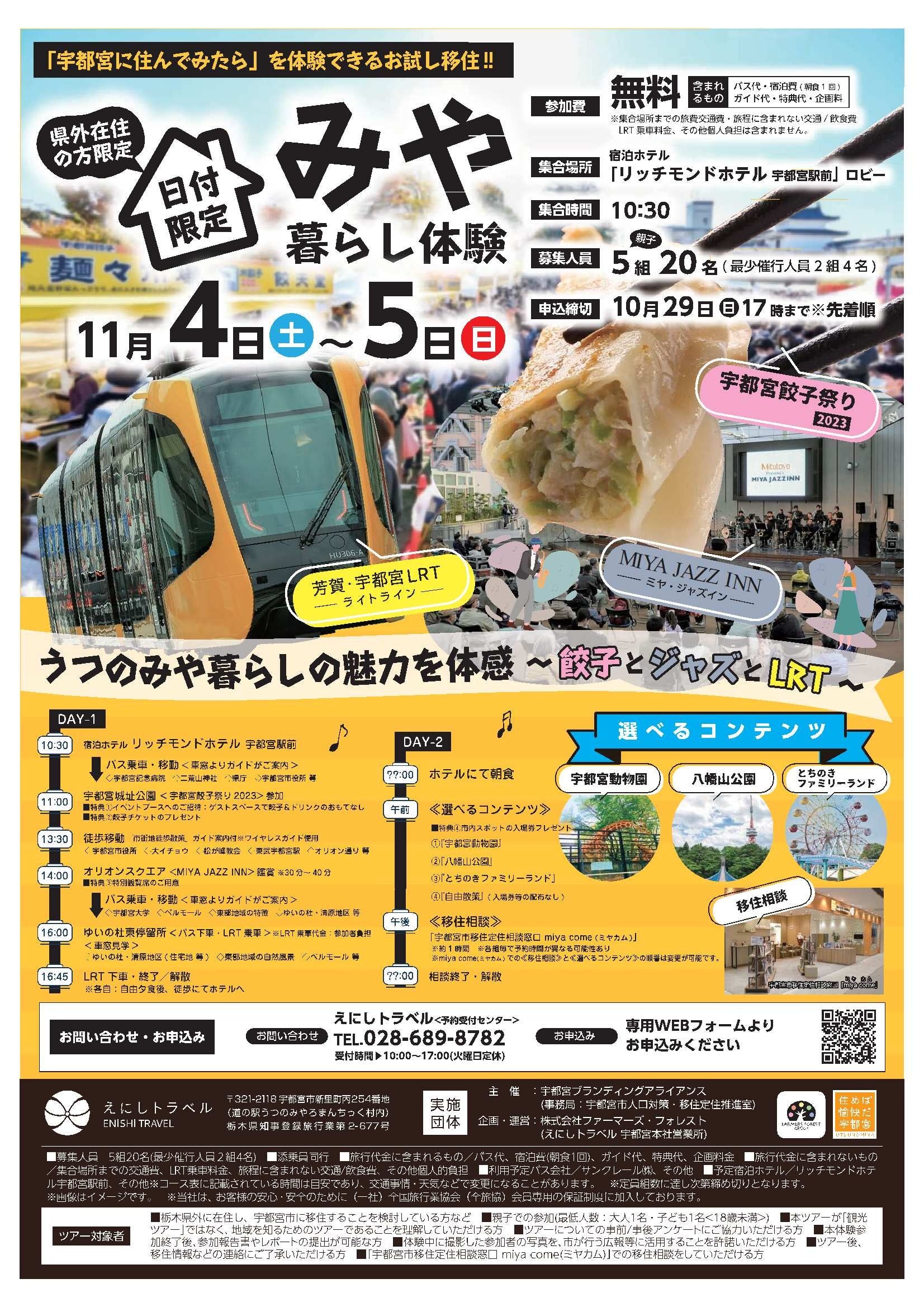 宇都宮市では、本市に移住を検討されている方を対象に、実際に宇都宮に訪れていただき、宇都宮での暮らしをイメージできる「みや暮らし体験事業」を実施中です。