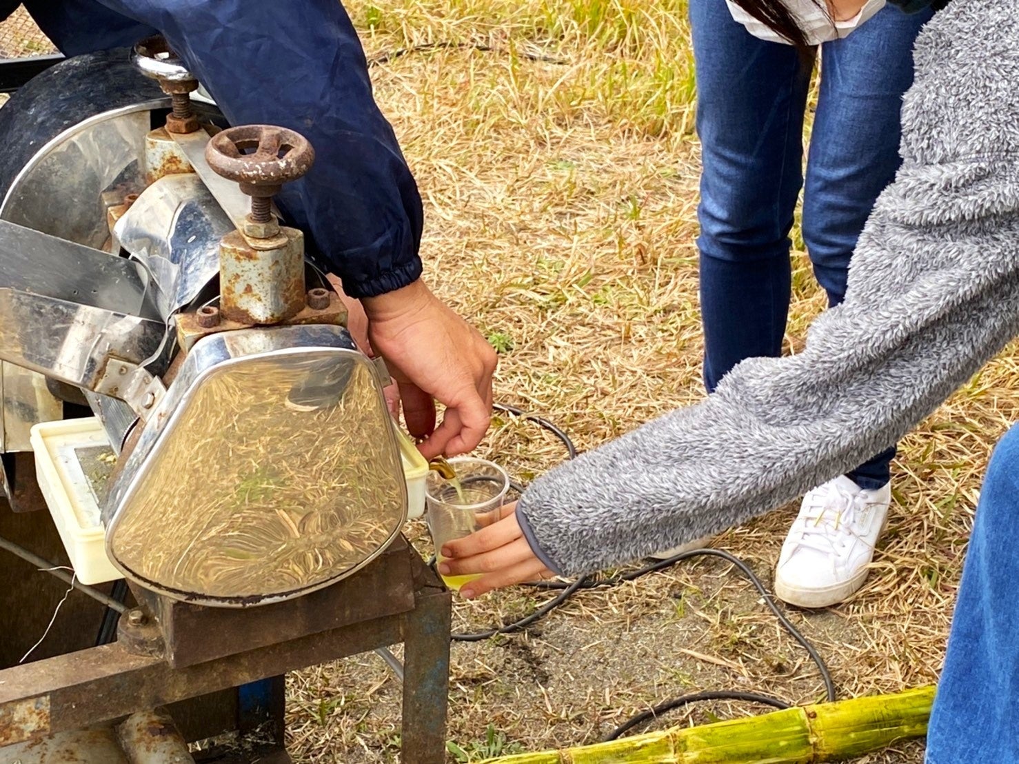 獲りたてのサトウキビを搾り、サトウキビ100%ジュースを試飲出来ます!