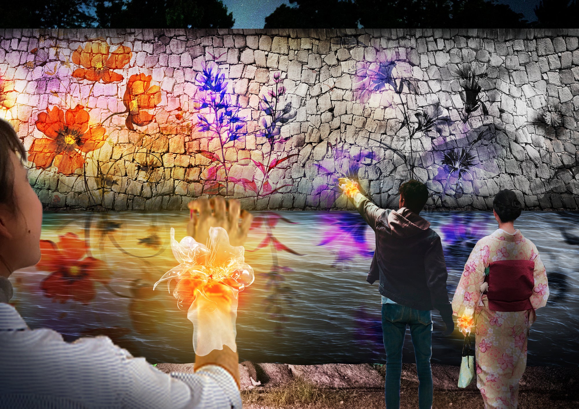 二条城のデジタルアートと連動し、自分も花のアートとなるウェアラブルアートが初登場