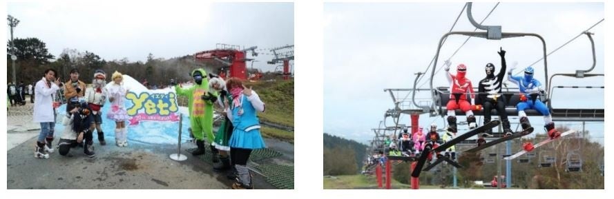 演出とともに、仮装したスノーボーダーやスキーヤーたちが滑り出す他、静岡県裾野