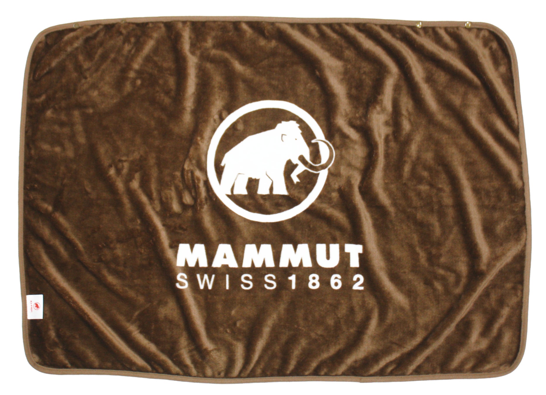 マムートロゴが真ん中に配置された特製ブランケット。肌触りも良く様々なシーンでおすすめ。