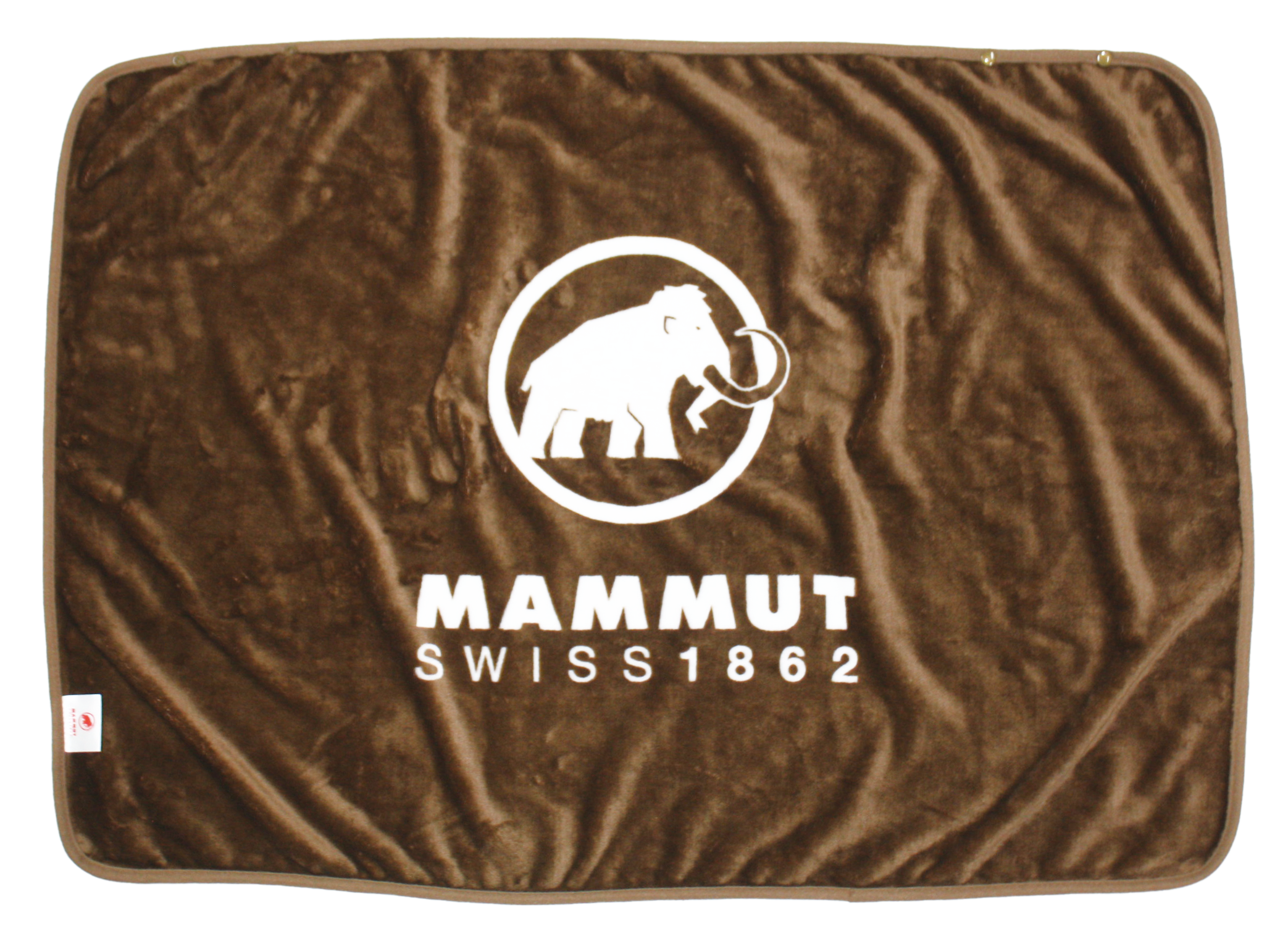 マムートロゴが真ん中に配置された特製ブランケット。肌触りも良く様々なシーンでおすすめ。