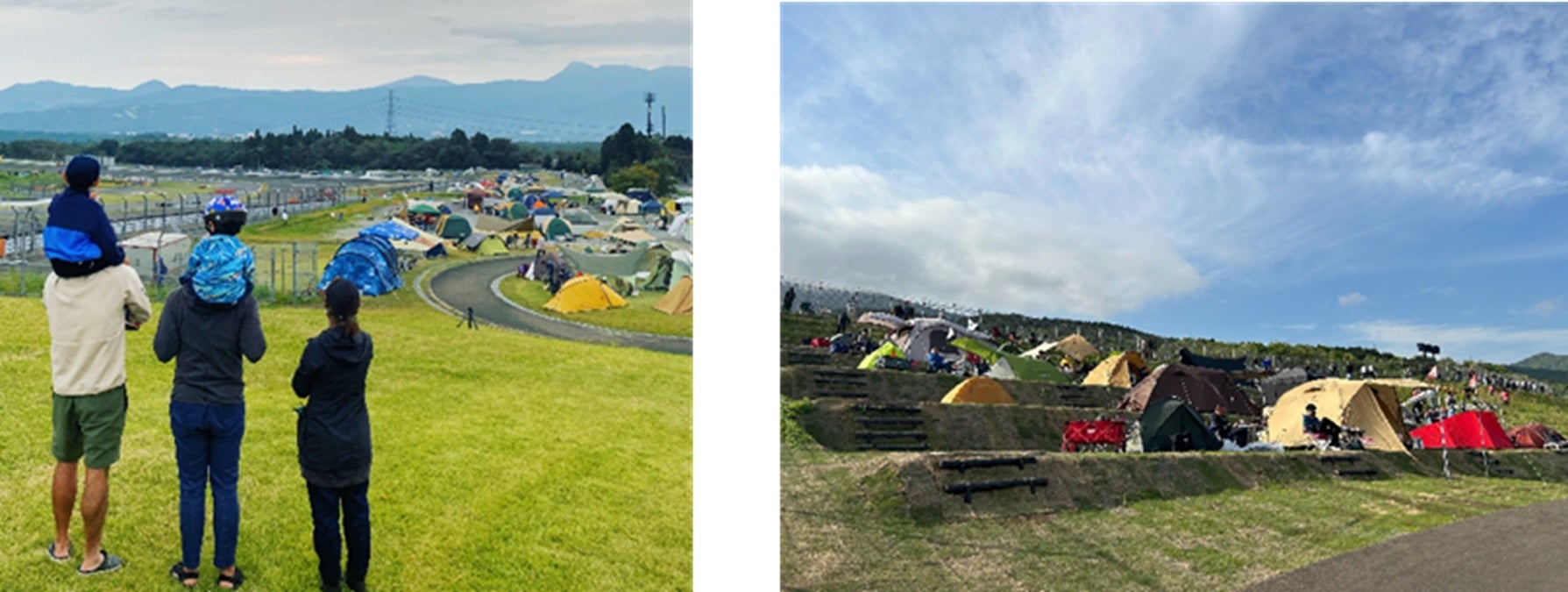 レース開催期間の11/11(土)から12(日)にかけては、サーキット場内でテントが張れて、キャンプ泊でレース観戦を楽しめます!一部の指定エリア外であれば、空いている芝生スペースなどにテントを張ることできます。晴天の場合は富士山を見ながらの キャンプが楽しめ、土曜日夜はバーベキューなどで秋キャンを満喫いただけます。テントから観戦するもよし、拠点にしてグランドスタンドで観戦するもよし、レース観戦とアウトドアのコラボレーションを是非ご堪能ください。