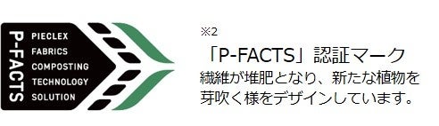 また、生地は生分解性素材であるポリ乳酸繊維のピエクレックスと綿の交編で、縫製糸にも綿を使用するなど、環境への配慮を徹底しました。株式会社ピエクレックスが構築した循環インフラ「P-FACTS」*1適合製品であり、使用後は「P-FACTS」にて回収することで、コンポストでの堆肥化を経て、最終的に「農業や林業での堆肥利用」まで実施されます。
