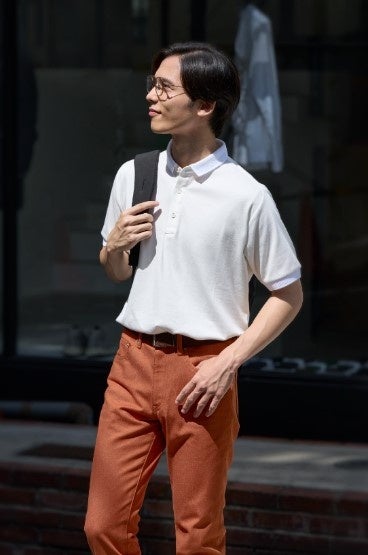 ・「narifuri × ピエクレックス ポロシャツ」は、普段使いに最適なシンプルデザインの「レギュラータイプ」と、ビジネスシーンなどに最適な「台襟付きタイプ」をラインアップ。いずれも使い勝手の良いバックポケット仕様となっており、サイクリング用途だけでなく、様々なシーンでご使用いただけます。カラーはホワイトとブラックからお選びいただけ、ピエクレックスと綿を交編することでブラックは独特のメランジ感を生み出しています。